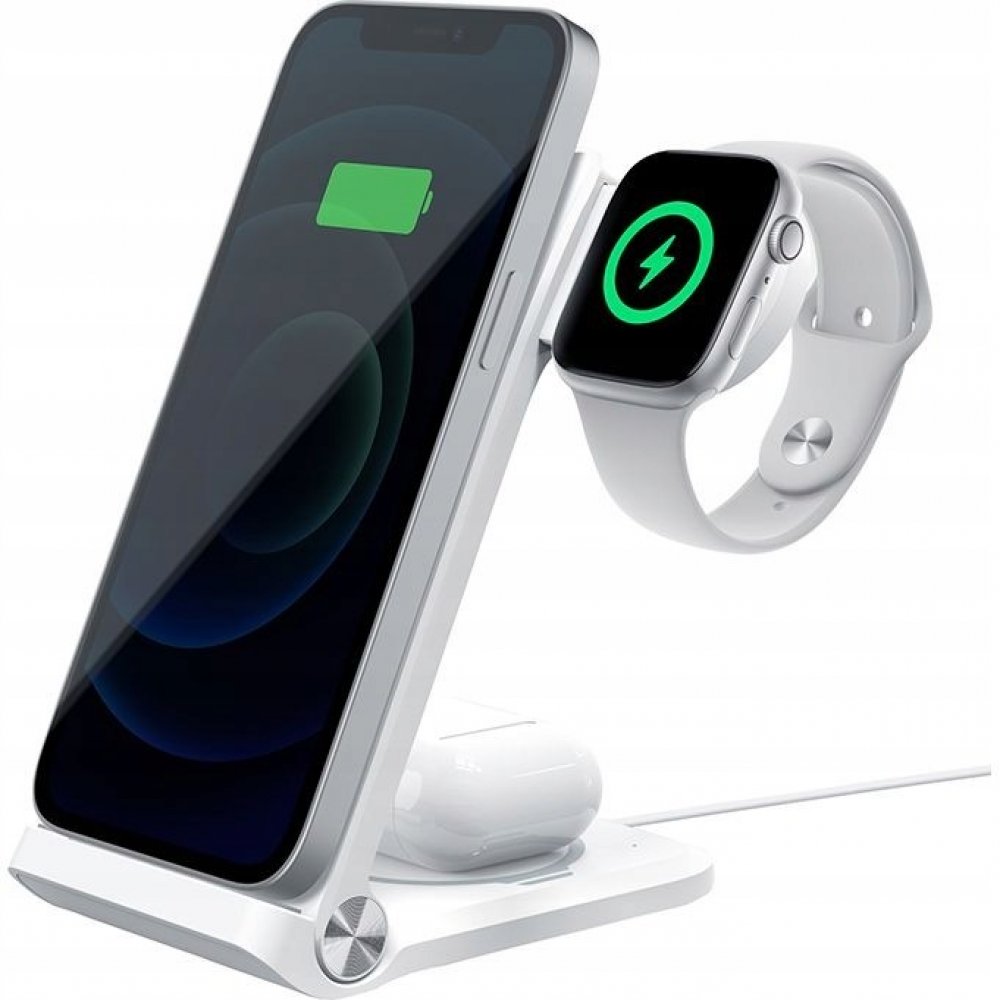 Nabíjecí stanice je skvěle ovladatelná pouhou jednou rukou. Pro mobilní telefon je zde jednoduchý stojánek, kam lehce uložíte jednou rukou svůj mobilní telefon a ten se ihned začne sám automaticky nabíjet. Pro chytré hodinky je určený magnetický stojánek, který se právě díky silnému magnetu postará o bezpečné a přesné uchycení vašich chytrých hodinek. A dále má i místo pro bezdrátové nabíjení TWS sluchátek na základně za telefonem.