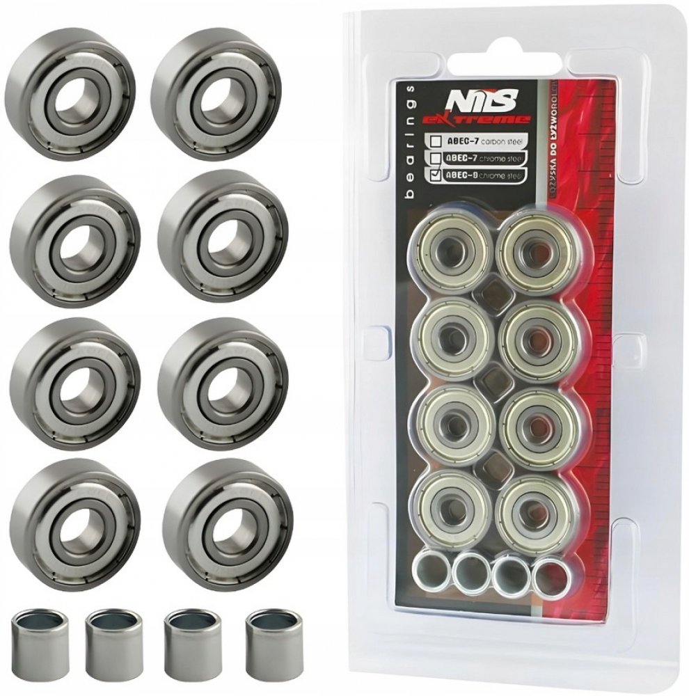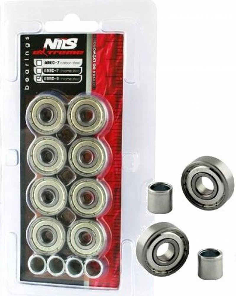 Vysoce kvalitní ložiska Nils ABEC 9 RS chrome jsou vyrobeny z vysoce kvalitní chromové oceli. Výhodou tohoto provedení ložisek je nejnižší valivý odpor, který se promítá do vyšší rychlosti v americkém standardu Annular Bearing Engineering Commitee ve zkratce ABEC.