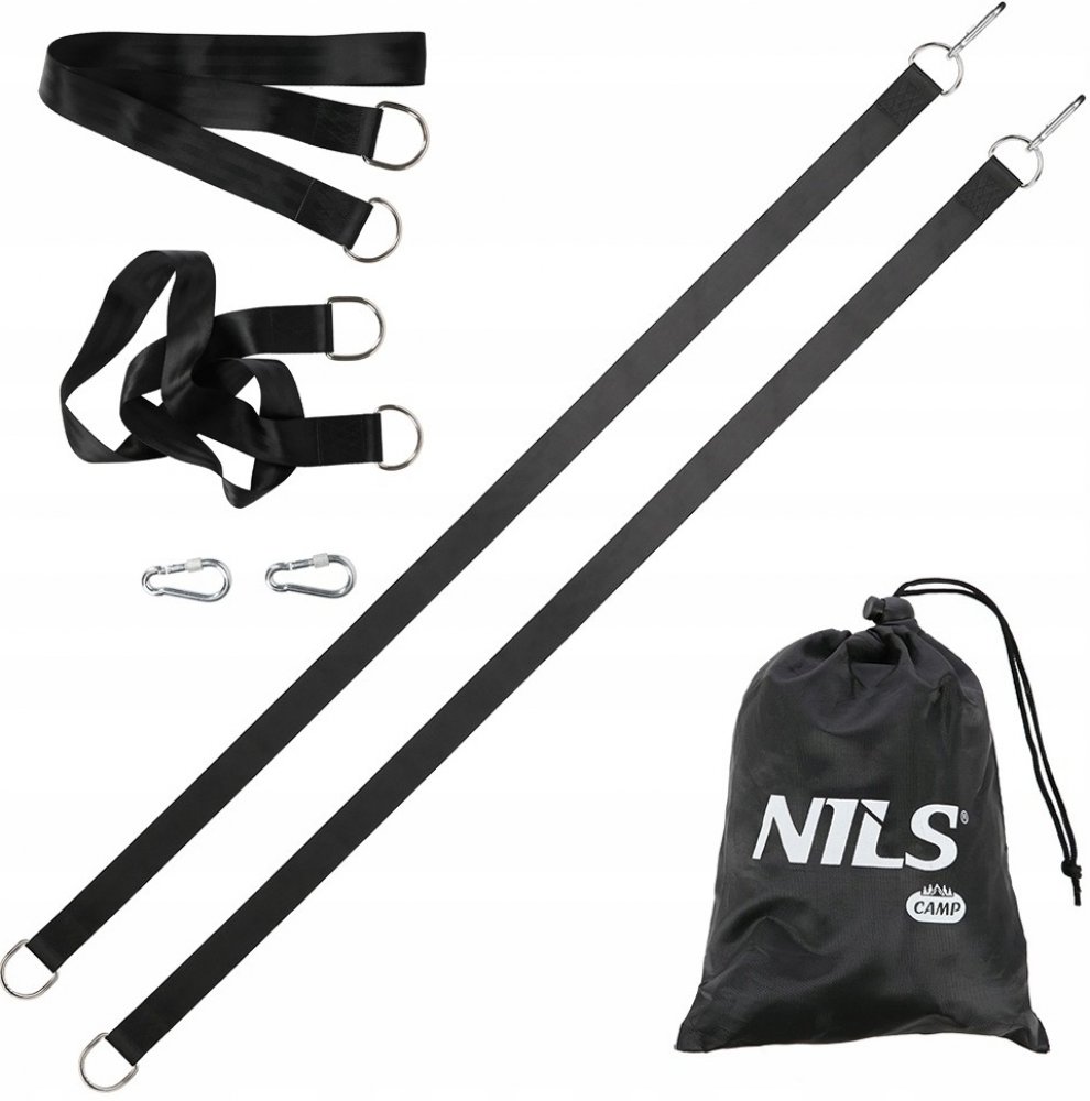 Sada 2 polyesterových popruhů s ocelovými oky NILS Camp NC1722 je určen k zavěšení houpaček, houpacích sítí, posilovacích systémů a brazilských křesel všude tam, kde nestačí délka originálních lan. Pokud máte například trámy na terase příliš vysoko pro zavěšení houpačky, nebo stromy na zahradě jsou příloš daleko pro napnutí hamaky, pak je NC1722 ideální řešení. V případě potřeby lze více popruhů spojit pomocí karabin.