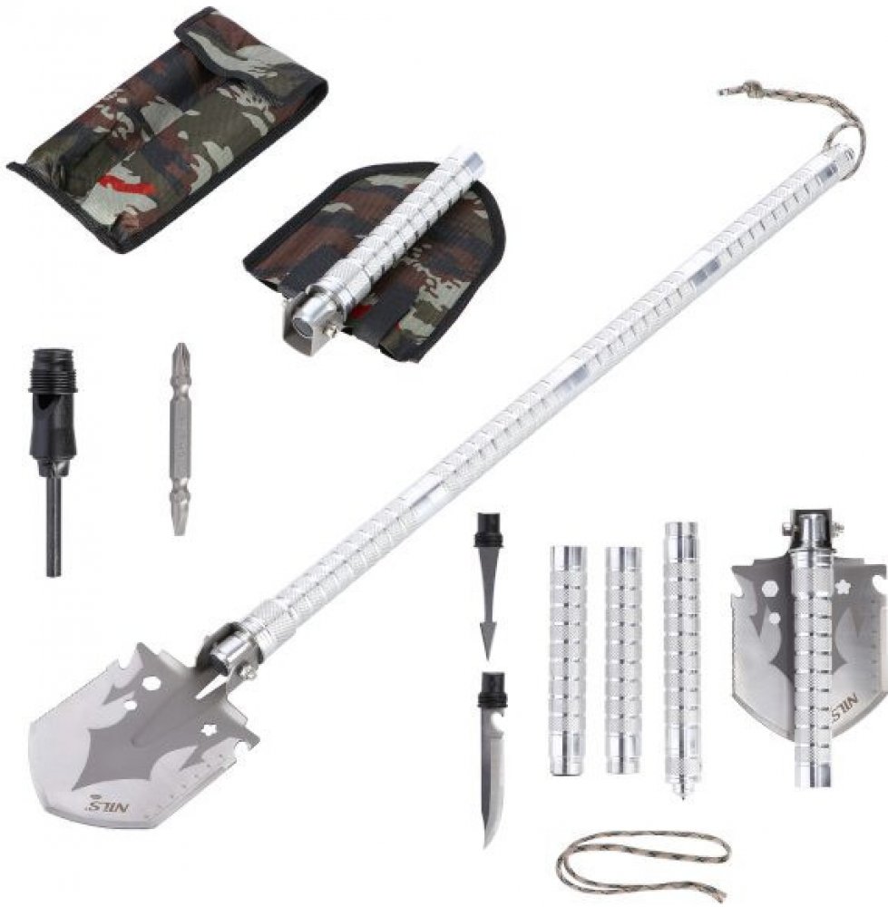 Tato multifunkční lopata má řadu různých nástrojů: od pily, rýče, motyky, štěpkovače, nože až po podpalovač, udidla, provazový nůž, rozbíječ skla, krejčovský metr, otvírák, špíz, a dokonce i píšťalka - vše potřebné v obtížných situacích.polních podmínkách. S lopatou NC1752 budete připraveni na jakýkoli úkol, ať už jde o stavbu přístřešku, přežití v divočině, pomoc v nouzi nebo práci na zahradě. Přiložený kufřík usnadňuje přepravu a vestavěné nástroje z něj dělají jednu z nejuniverzálnějších součástí vybavení pro každého nadšence dobrodružství.