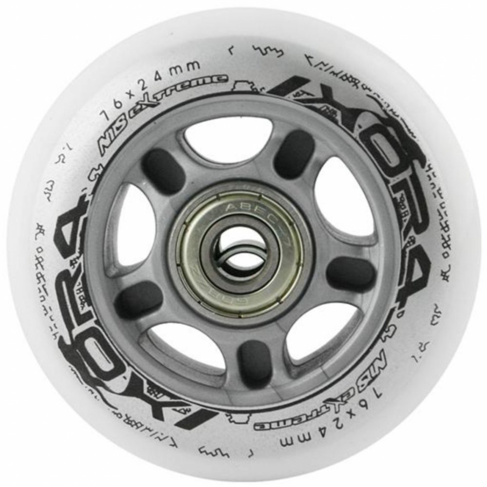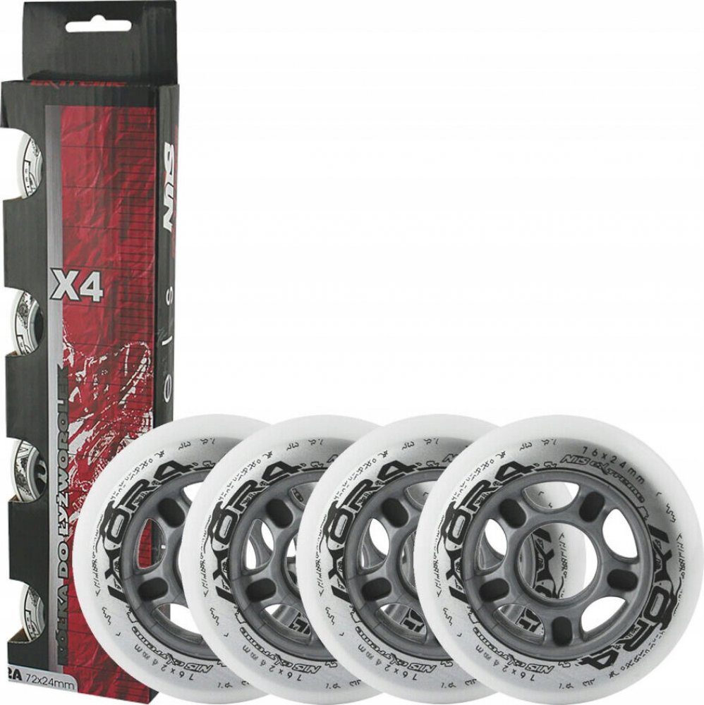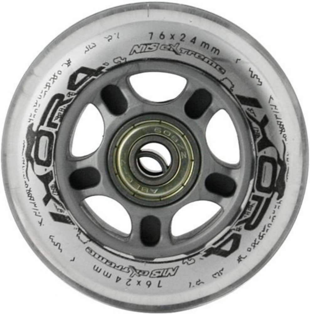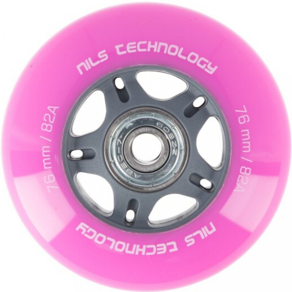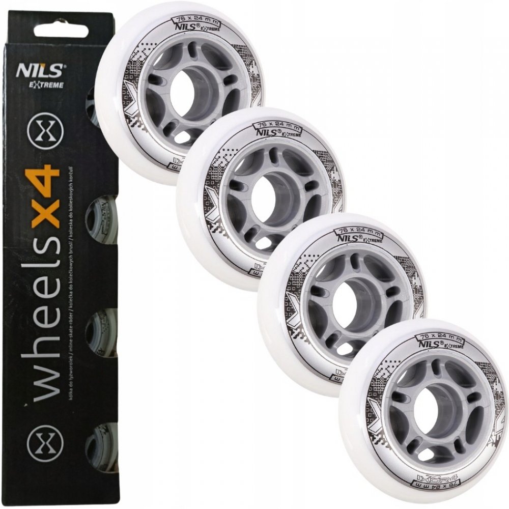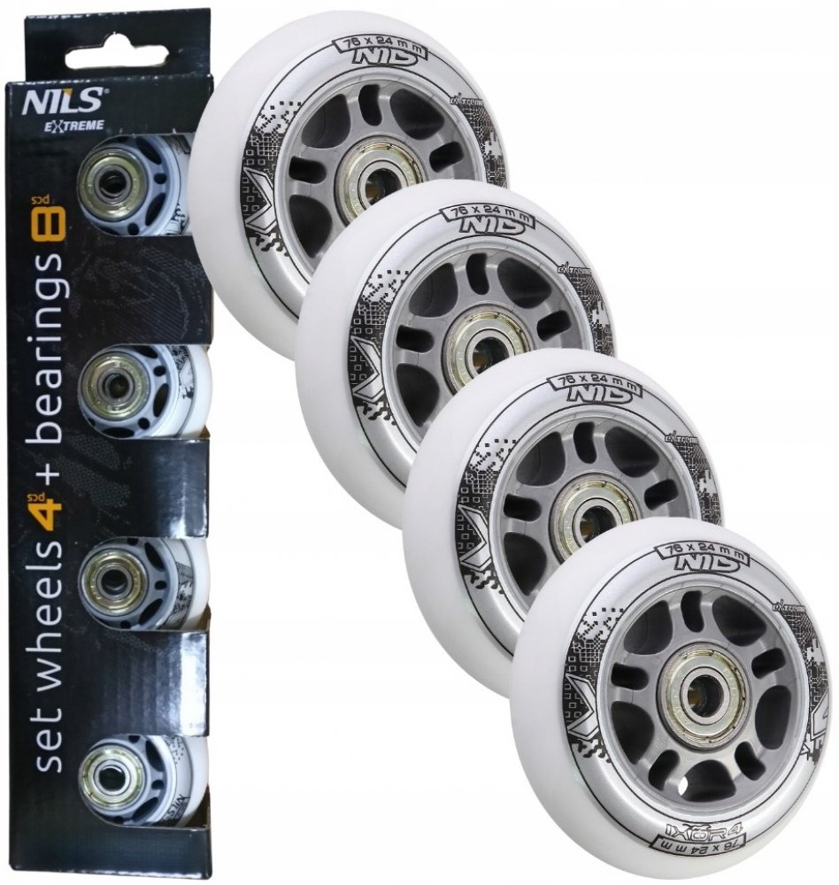 Náhradní kolečka NILS Extreme PU o velikosti 76 mm a šířkou 24 mm jsou vyrobeny z polyuretanu, což je kvalitní a odolný materiál. Tvrdost koleček 82A je ideální hodnotou pro pohlcování nerovností, při zachování vysoké přilnavosti k podkladu, takový zlatý střed. Neobsahují ložiska. Kolečka mají lehce grafický design v černo šedé barvě, s logem výrobce.