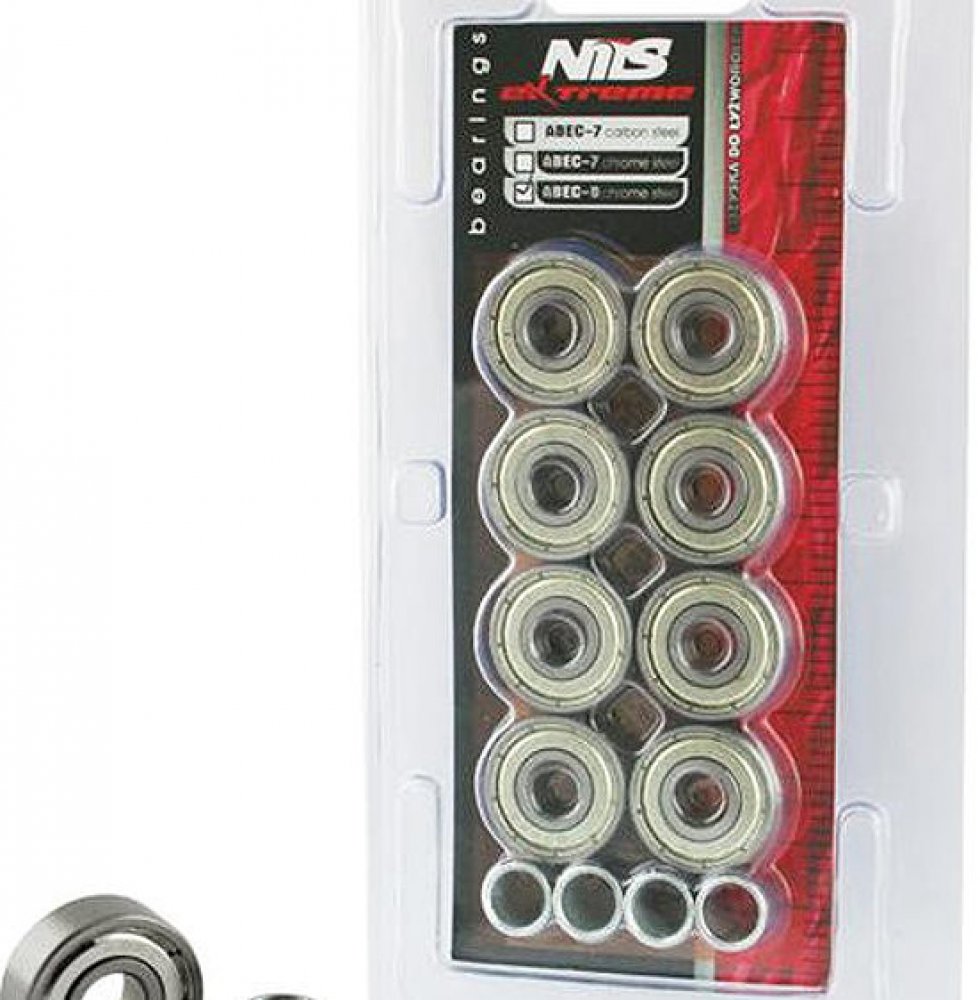 ABEC 9 chrome ložisko je vyrobeno z vysoce kvalitní chromové oceli. Výhodou tohoto provedení je nejnižší valivý odpor, který se promítá do vyšší rychlosti v americkém standardu Annular Bearing Engineering Commitee ve zkratce ABEC. Důležitým parametrem je excentricita ložiska nebo kruhovitost 0,0012mm. Ložiska pro brusle, skateboardy a koloběžky. Klíčové vlastnosti ložisek NILE NILS EXTREME ABEC 9 ...