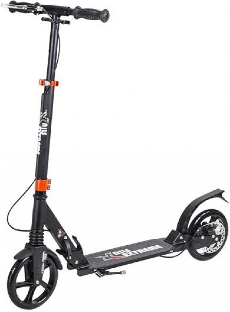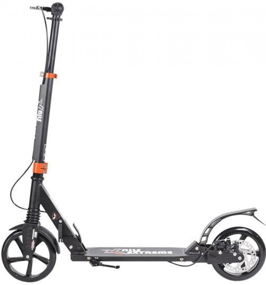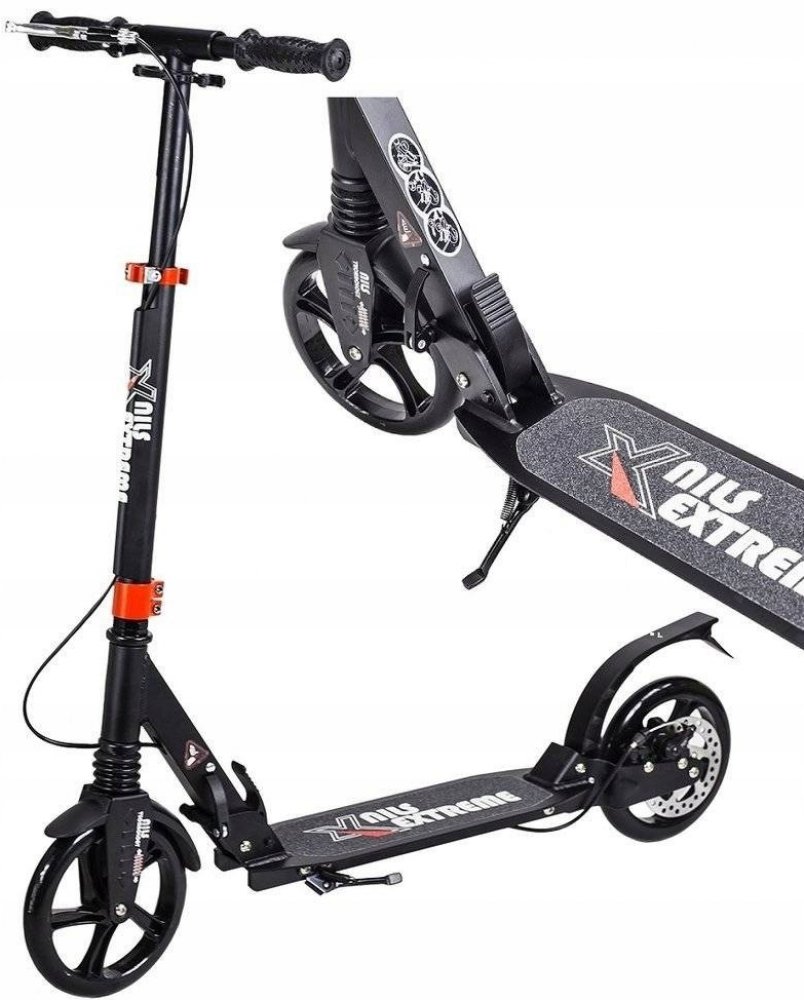 Skládací koloběžka značky NILS EXTREME HA200T je koloběžka určená pro celou rodinu. Charakteristickou vlastností koloběžky jsou dva tlumiče – přední svislý a zadní vodorovný, zajišťující větší komfort během jízdy, minimalizují drncání a pohlcují otřesy. Díky tomu se produkt dobře osvědčí při přejíždění nerovných povrchů. Široký a dlouhý nášlap je pokrytý protiskluzovým gripem zajišťujícím správnou...