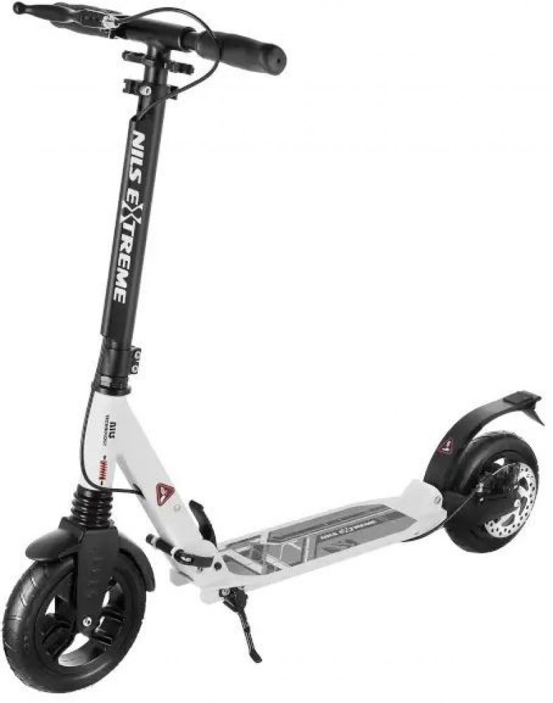 Koloběžka NILS Extreme HM208T je vhodná pro děti i dospělé. Charakteristikou modelu HM208T jsou tlumiče na předním i zadním kole a mechanická, kotoučová brzda.