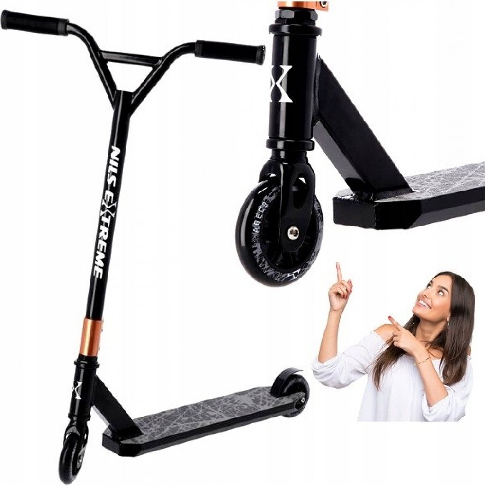 NILS Extreme HS104 je freestyle koloběžka s nosností 100 kg a je tak vhodná jak pro děti, tak pro dospělé. Konstrukce je vyrobena ze silné a trvanlivé oceli. Model HS104 je vhodný na asfalt a dlažbu. Kolečka o rozměru 100 x 24 mm jsou osazeny ložisky ABEC 9, bezpečnost zaručuje zadní přítlačná (blatník) brzda. NILS Extreme HS104 je díky malým, rychlým kolečkům, robustní, pevné kostrukci a řídítkům...