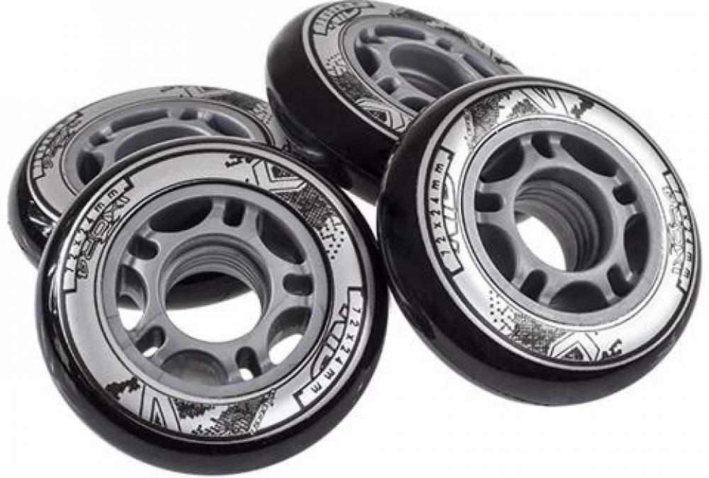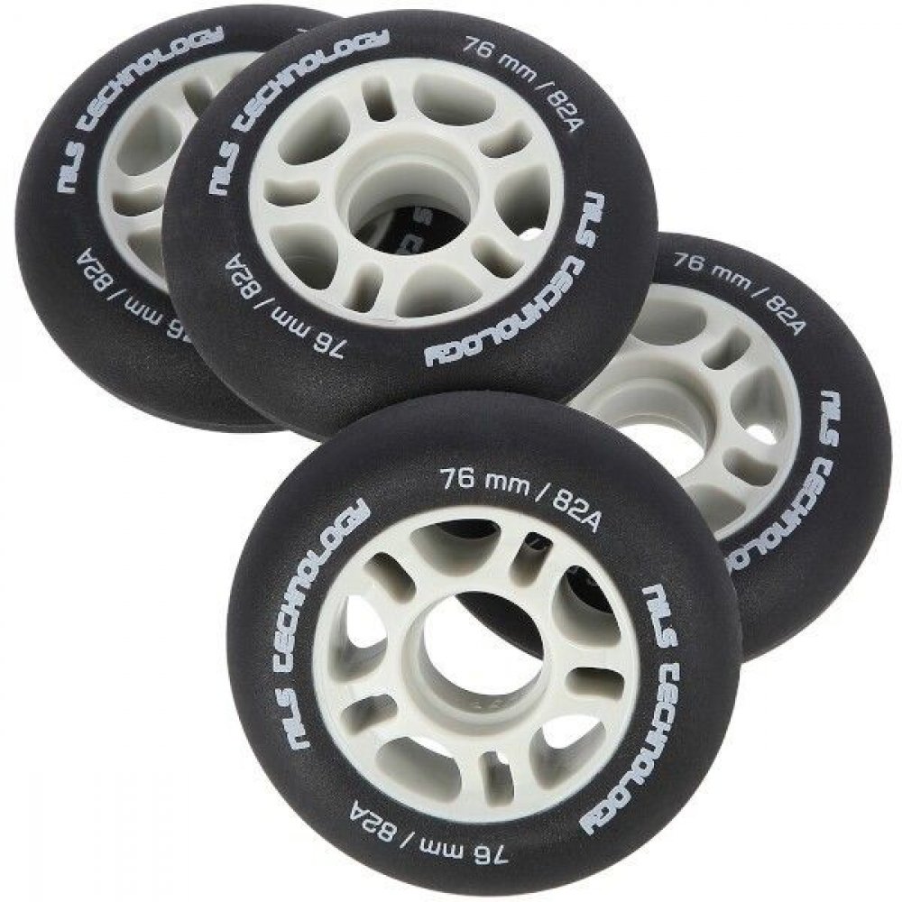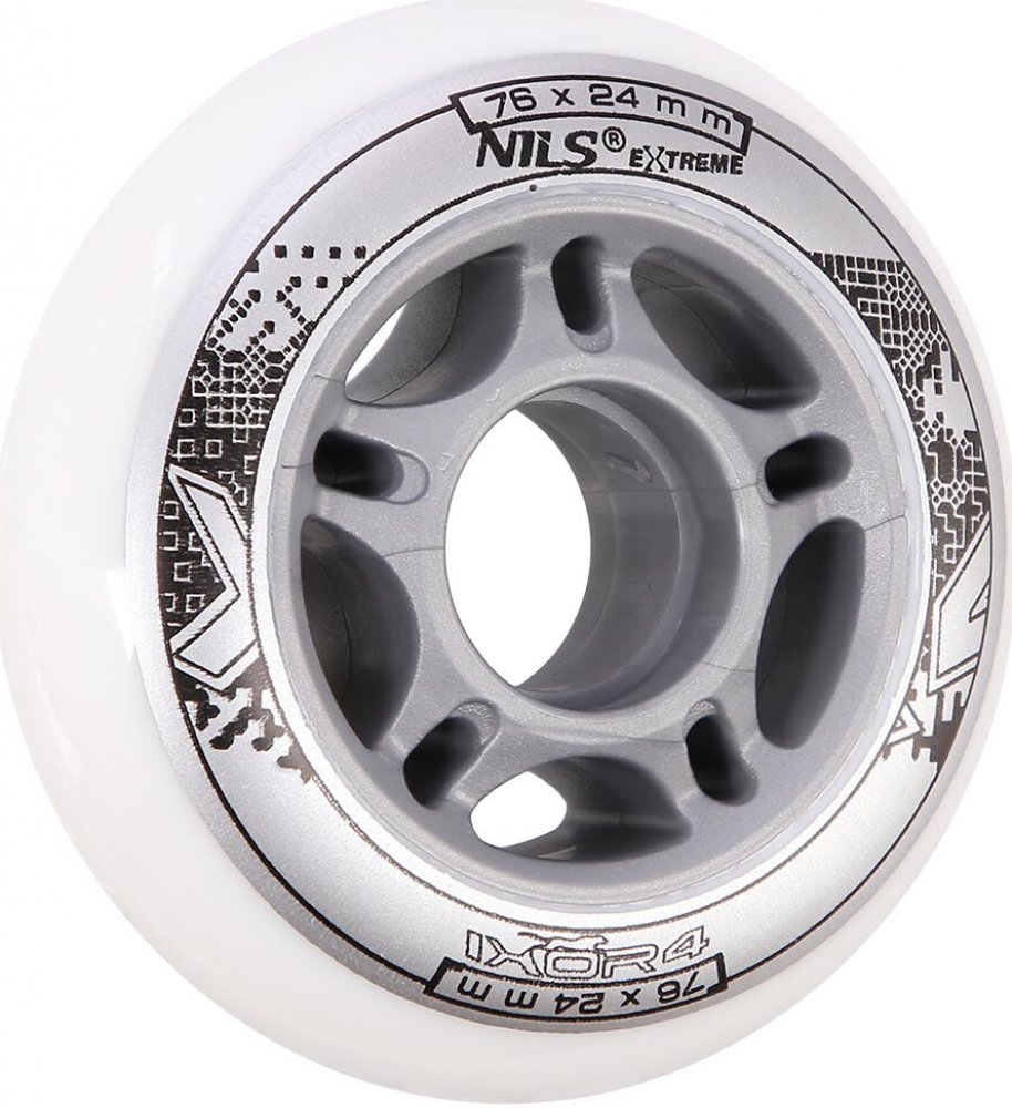 Náhradní kolečka NILS Extreme PU o velikosti 76 mm a šířkou 24 mm jsou vyrobeny z polyuretanu, což je kvalitní a odolný materiál. Tvrdost koleček 82A je ideální hodnotou pro pohlcování nerovností, při zachování vysoké přilnavosti k podkladu, takový zlatý střed. Neobsahují ložiska. Kolečka mají lehce grafický design v černo šedé barvě, s logem výrobce.