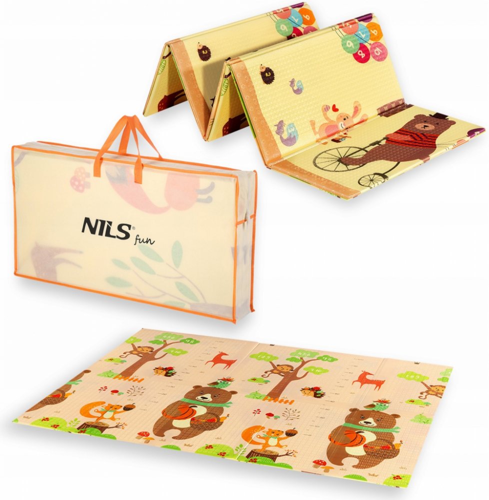 Objevte naši skládací dětskou podložku Forest od NILS Fun! Tato ve své kategorii jedinečná podložka zaujme nejen svým krásným lesním designem, ale nabízí také mnoho vlastností, které podporují rozvoj vašeho dítěte. Nabízí plochu o rozměrech 190x150 cm a poskytuje dokonalý prostor pro hru, učení a rozvoj motoriky. Bezpečnost a odolnost Naše podložka je vyrobena z pěny XPE, což znamená, že je mimořádně trvanlivá a odolná proti poškození. Protiskluzový povrch a vynikající izolace od studené podlahy zajišťují pohodlí a bezpečnost vašeho děťátka během hry. Díky své výjimečné měkkosti podložka dokonale tlumí pády a chrání vaše dítě při učení se novým motorickým dovednostem, jako je převalování ze zad na břicho, lezení nebo první pokusy o chůzi. Je ideálním místem, které vašemu batoleti poskytne bezpečný prostor pro zkoumání a učení se pohybem, což je v prvních letech života dítěte klíčové. Vzdělávací hodnota a multifunkčnost Kromě toho, že podložka slouží ke hře, je také vzdělávacím nástrojem. Díky vyvýšeným číslicím a písmenům, které pomáhají při výuce čtení, a ilustracím lesnich obyvatel podporuje smyslový a kognitivní vývoj vašeho dítěte. Oboustranný design podložky umožňuje měnit prostředí, poskytuje rozmanité podněty a udržuje zájem dítěte. Snadná přeprava a skladování Díky přiložené přenosné tašce se podložka snadno skladuje a přepravuje, což z ní činí ideální volbu pro rodiče na cestách. Skládací konstrukce podložky znamená, že doma i na cestách nezabírá mnoho místa a umožňuje snadné přenášení a skladování. Vyberte si dětskou podložku Forest od společnosti NILS Fun Výběrem naší podložky investujete do rozvoje a bezpečnosti svého dítěte. Dětská skládací podložka MD05 Forest je víc než jen hračka - je to prostor, který podporuje učení a rozvoj vašeho batolete na mnoha úrovních. Parametry: Materiál: XPE pěna Rozměry: Rozložená podložka: 190 x 150 x 1 cm Složená podložka: 75 x 40 x 10 cm Snadná údržba Tlumí pády Oboustranná Dodáváno v tašce pro snadné přenášení a skladování Upozornění: Není určeno pro komerční použití