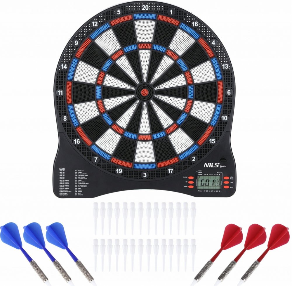 Elektronický terč sleduje skóre v reálném čase, podporuje až 8 hráčů a nabízí 32 herních režimů včetně oblíbených variant šipek. NILS Fun TDE01 je elektronický terč na šipky, který spojuje tradici s moderní technologií. TDE01 poskytuje nejen skvělou zábavu, ale také nové možnosti sledování a zlepšování vaší hry.