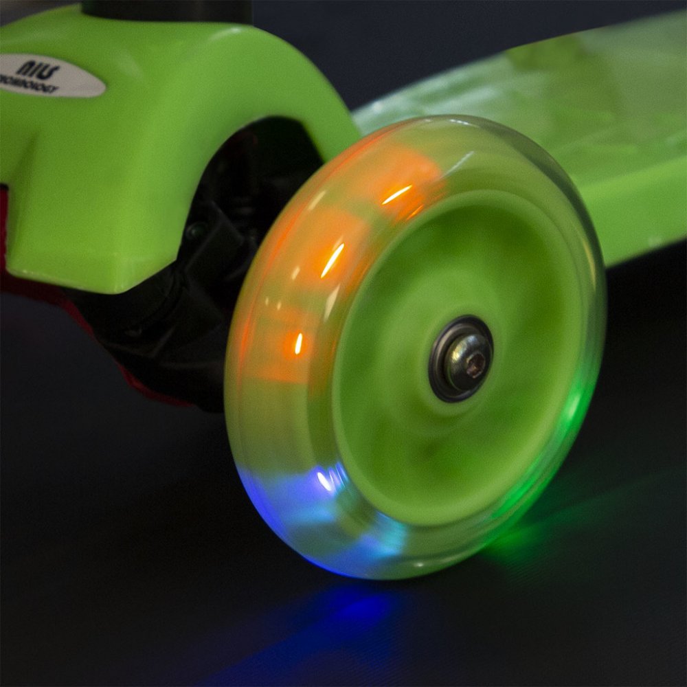 - Kolečka: přední LED PU 120 mm, zadní LED PU 80 mm