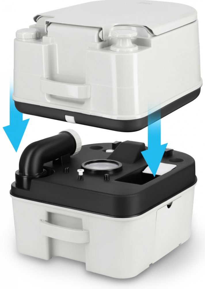 Toaleta je vyrobena z odolného a vlhkuvzdorného PP (polypropylenu). Použití těsného šoupátkového ventilu účinně izoluje nečistoty a zabraňuje úniku pachů. Splachovací systém je založen na jednoduchém a spolehlivém ručně poháněném mechanismu, který umožňuje používat toaletu bez přístupu k elektřině nebo vodovodním instalacím. Široké prkýnko a ergonomická výška zajišťují pohodlí pro všechny uživatele – bez ohledu na věk.