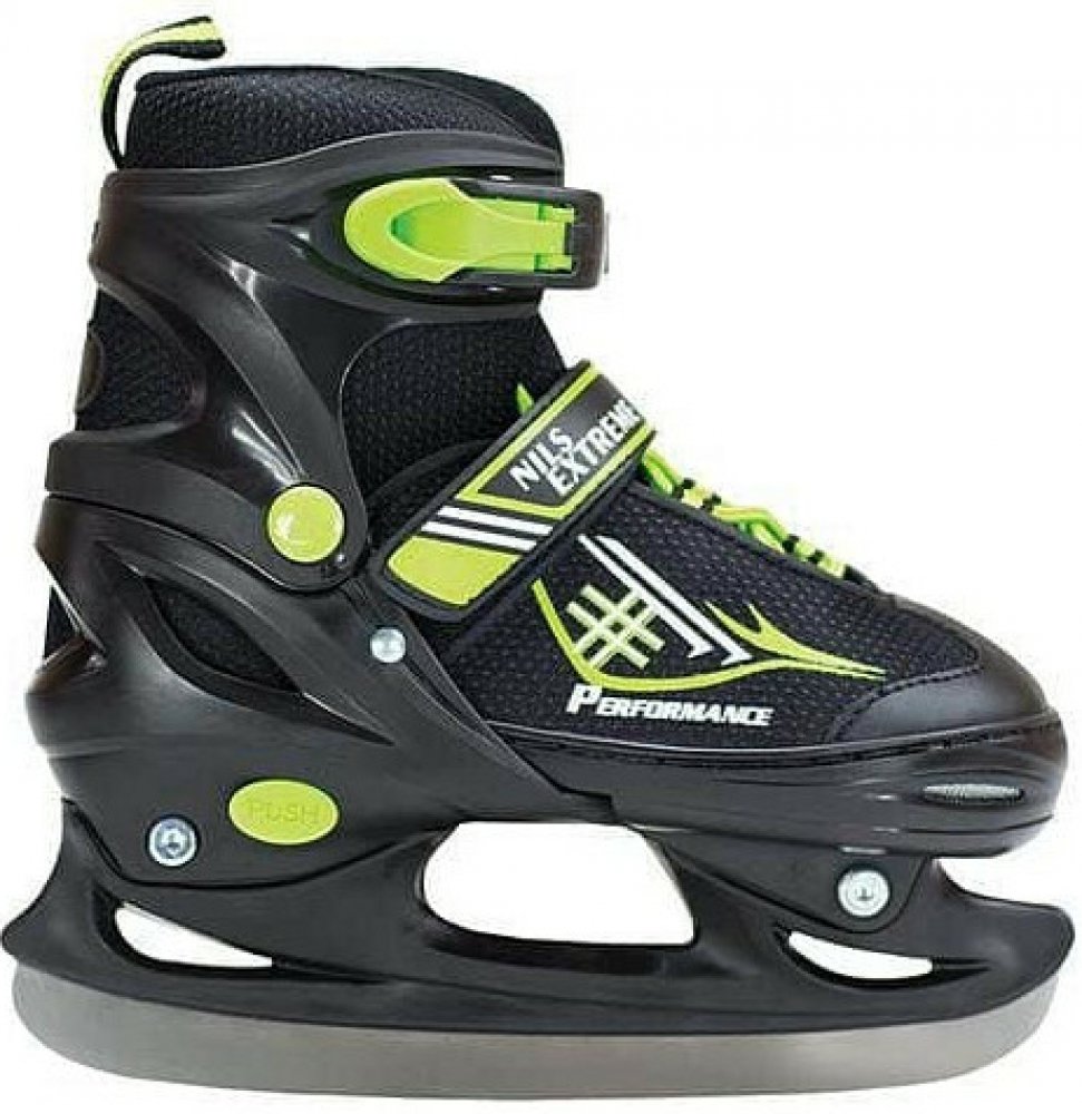 NH 7104 A Nils Extreme je set kolečkových a zimních bruslí určený pro začínající a středně pokročilé uživatele. Jejich vysoká kvalita zaručuje dlouhou životnost a je jistou volbou na dlouhý čas. Model NH 7104 A byl také vybaven třístupňovým nastavením velikosti boty, kdy je možné ji nastavit dle potřeb uživatele. Je to způsob, jak ušetřit čas i peníze. Takové řešení prodlužuje jejich životnost a umožňuje, aby byly používány více než jednou osobou.