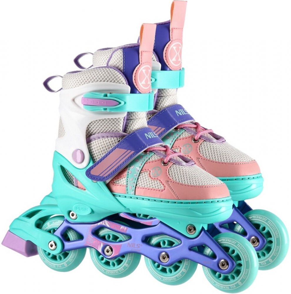 Kolečkové brusle NILS Extreme NJ1828A jsou určeny k rekreačním projížďkám pro začínající bruslaře. Model NJ1828A v sobě spojuje poutavý design a kvalitní materiály.