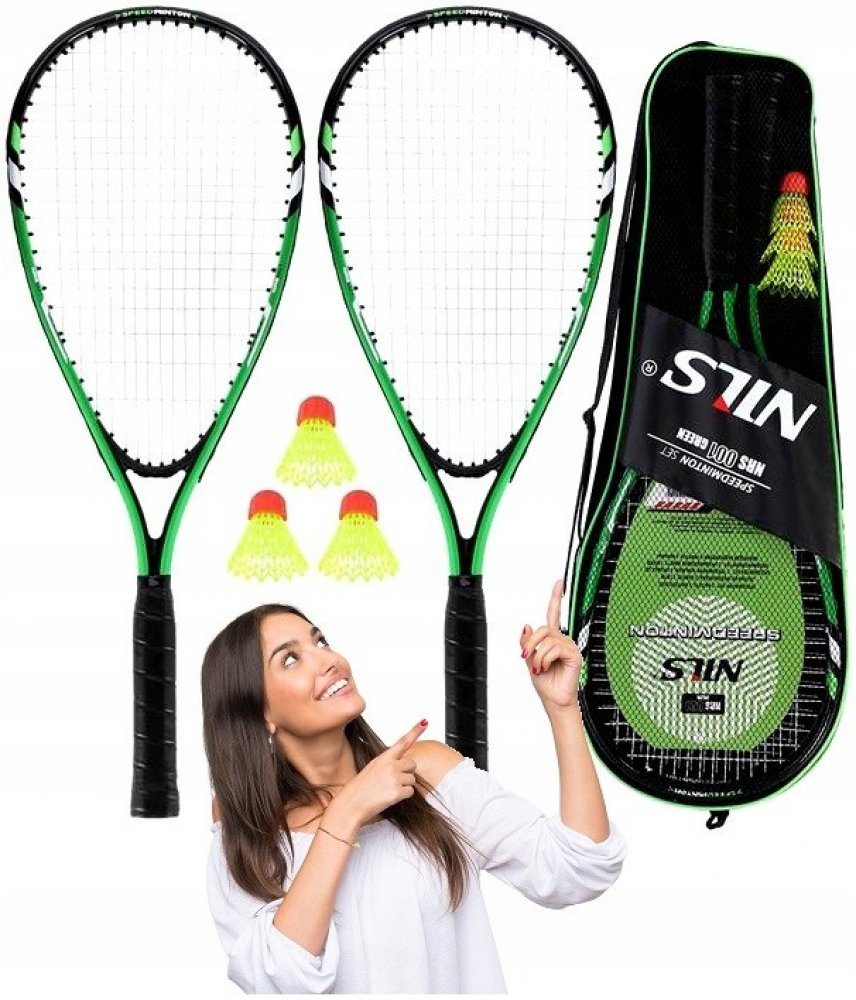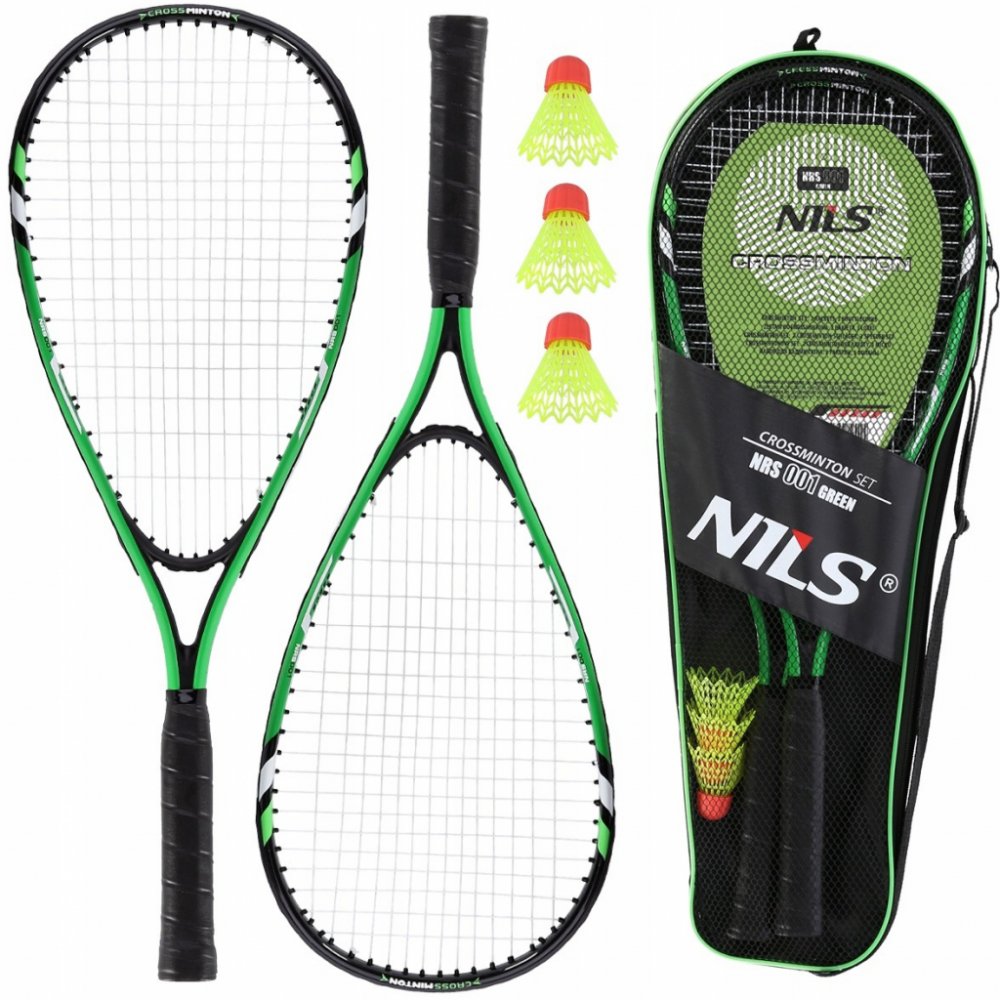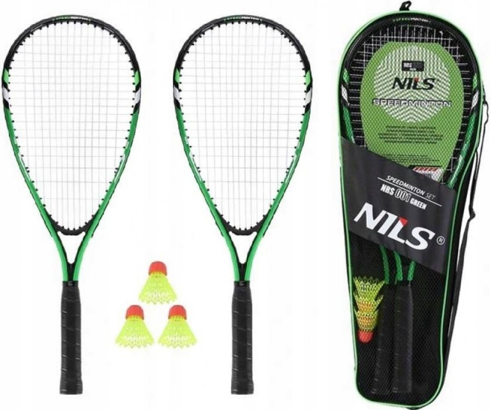 NILS NRS001 je sada pro hraní crossmintonu (známého také jako speed badminton, nebo speedminton), která obsahuje 2 rakety, 3 speedery a obal.