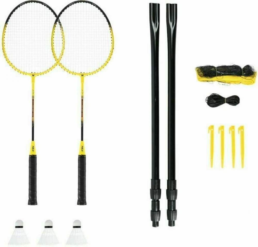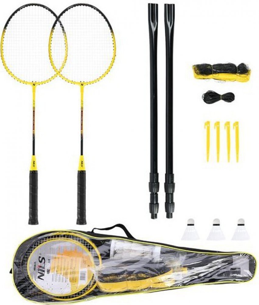 Badmintonová sada NILS NRZ262 obsahuje vše potřebné pro téměř okamžité zahájení hry. V praktickém obalu s popruhem přes rameno naleznete 2 rakety, 2 teleskopické sloupky, síť, napínací šňůry s kolíky a 3 letky.
