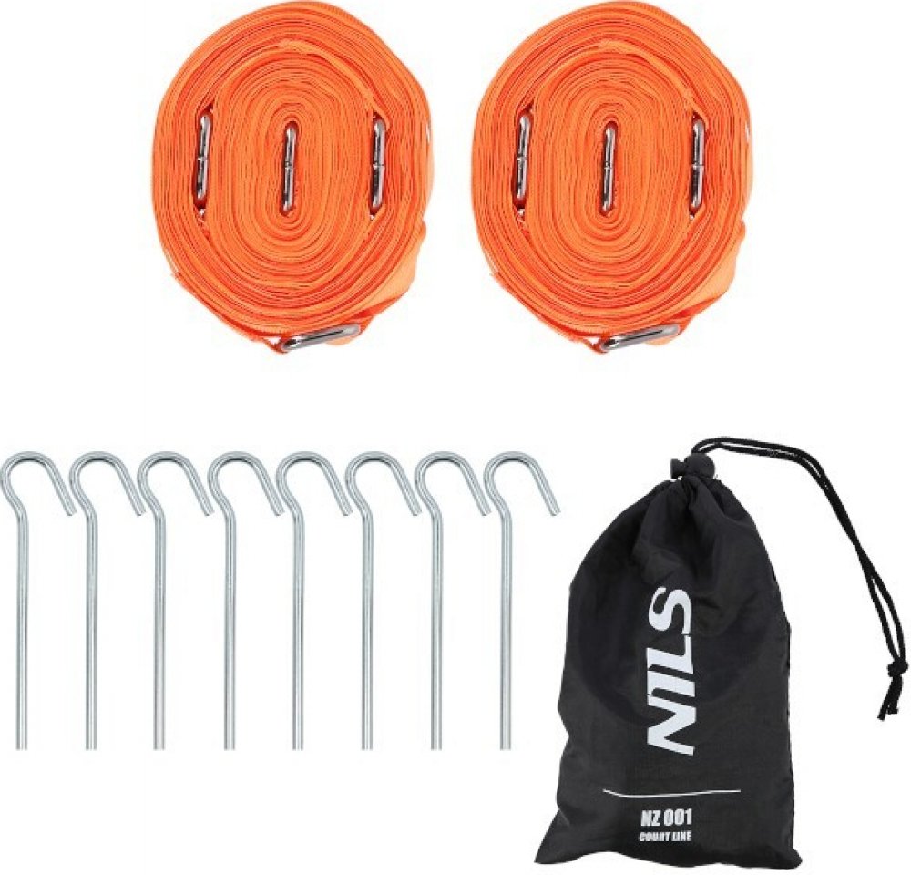 NILS NZ001 je kompletní sada pro vyznačení hrací plochy o dvou čtvercích se stranou 5,5 metru. Sada obsahuje 2 popruhy, 8 kolíků a pytlíček pro pohodné uskladnění a přenášení.