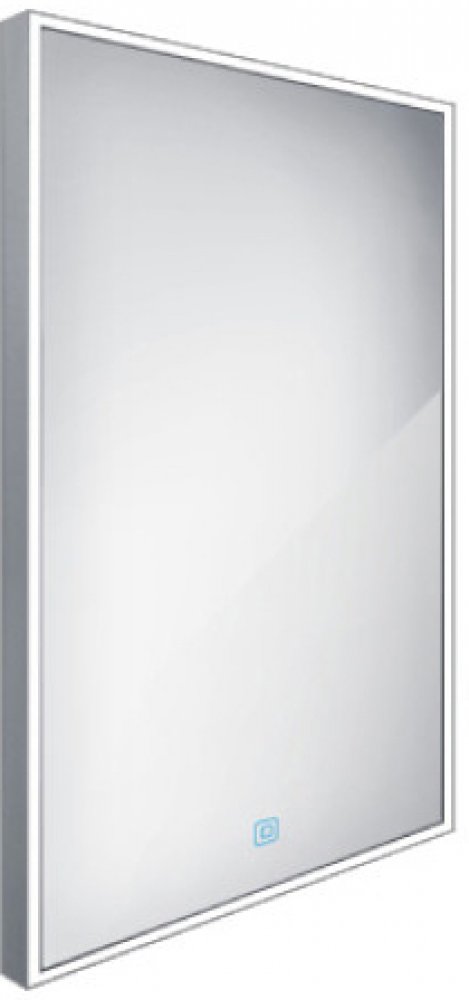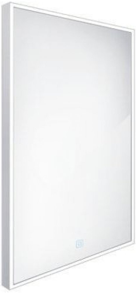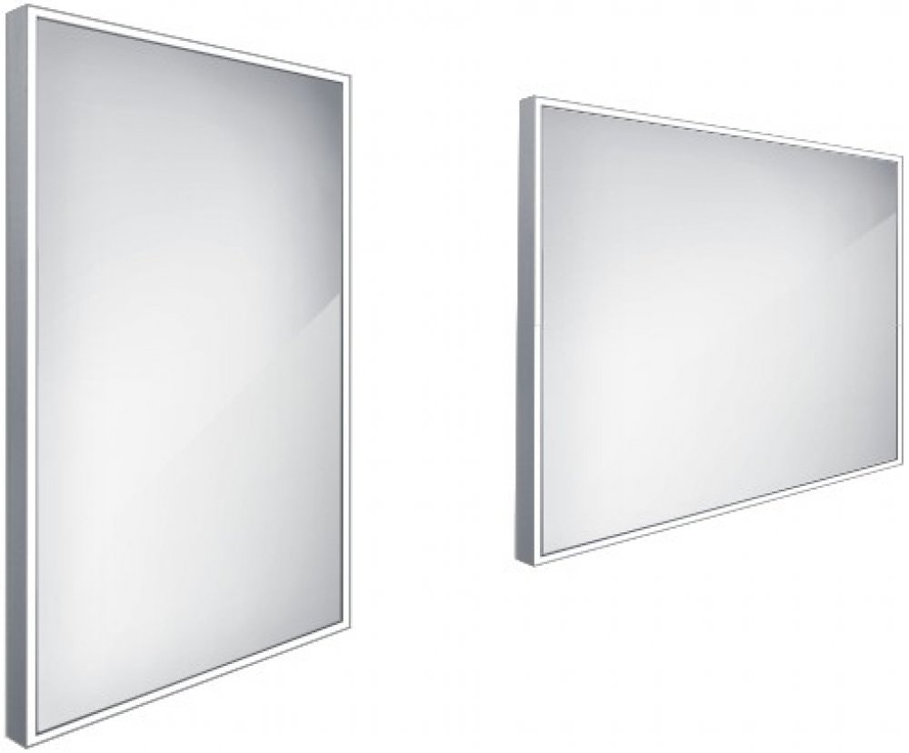 Obdélníkové zrcadlo s rámem s ostrými rohy a celoobvodovým podsvícením pro dokonalé a rovnoměrné osvětlení.