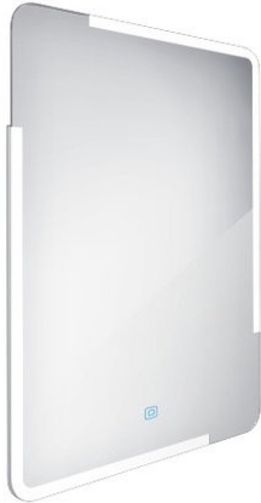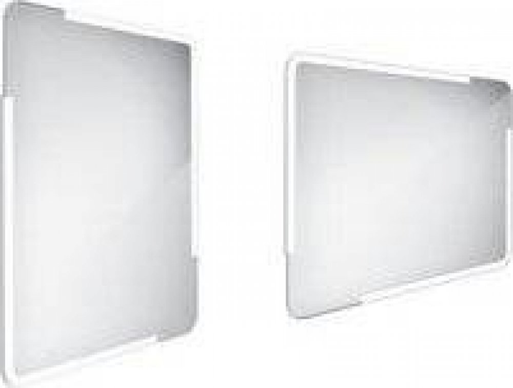 Obdélníkové bezrámové zrcadlo s oblými rohy a celoobvodovým podsvícením pro dokonalé a rovnoměrné osvětlení.