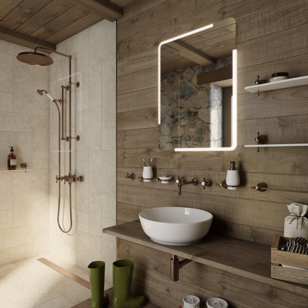 Zrcadlo do koupelny 60x80 s osvětlením v rozích, dotykový spínač je skvělým doplňkem do koupelny. Zrcadla do koupelny NIMCO vynikají kvalitním zpracováním a moderním designem. Svícení za použití akrylátového skla plexiglass. Konstrukce je z hliníkového rámu 32x19 mm, sklo zrcadla o tloušťce 5 mm. Připojení 220-240 V. Zapínání / vypínání / ovládání dotykovým senzorem s pamětí. Možnost nastavení bar...