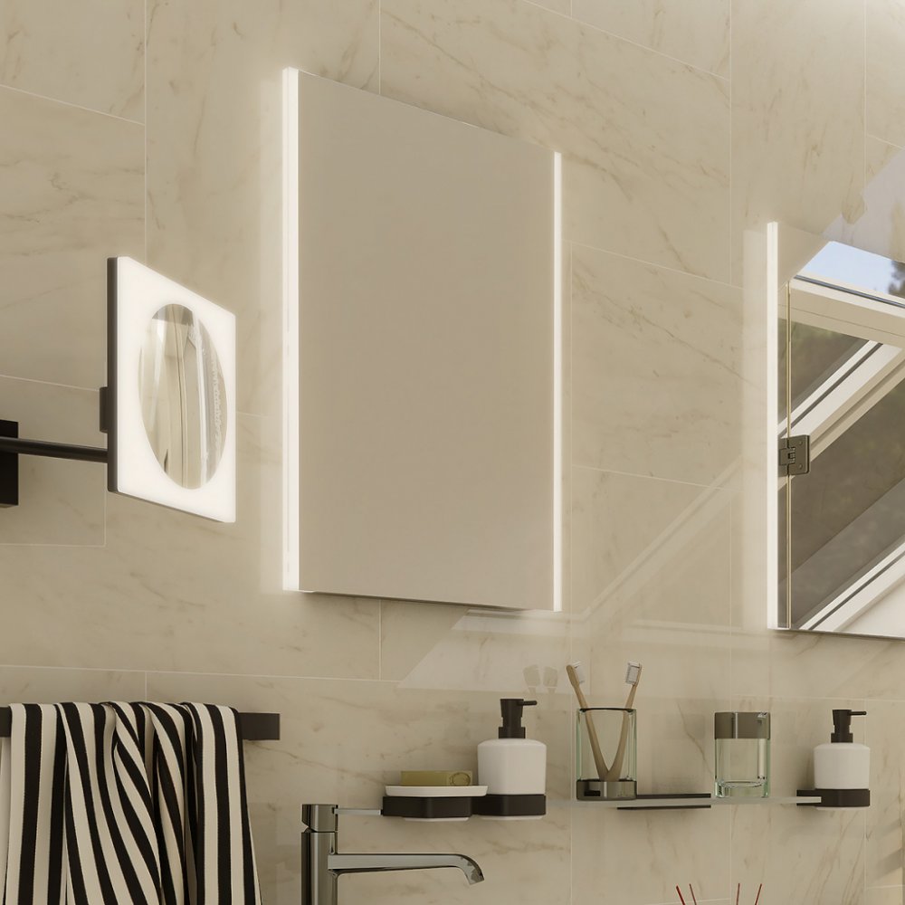 Zrcadlo do koupelny 60x80 s osvětlením po stranách je skvělým doplňkem do koupelny. Zrcadla do koupelny NIMCO vynikají kvalitním zpracováním a moderním designem. Zrcadlo je podsvíceno LED pásky ukrytými v PVC tubě (profil U 20x20 mm), která je umístěna pod vypískovanými bočními stranami zrcadla. Světlo neprochází pouze skrz sklo, ale vystupuje také z bočních stran zrcadla. Plně svítí 20 mm bočních...