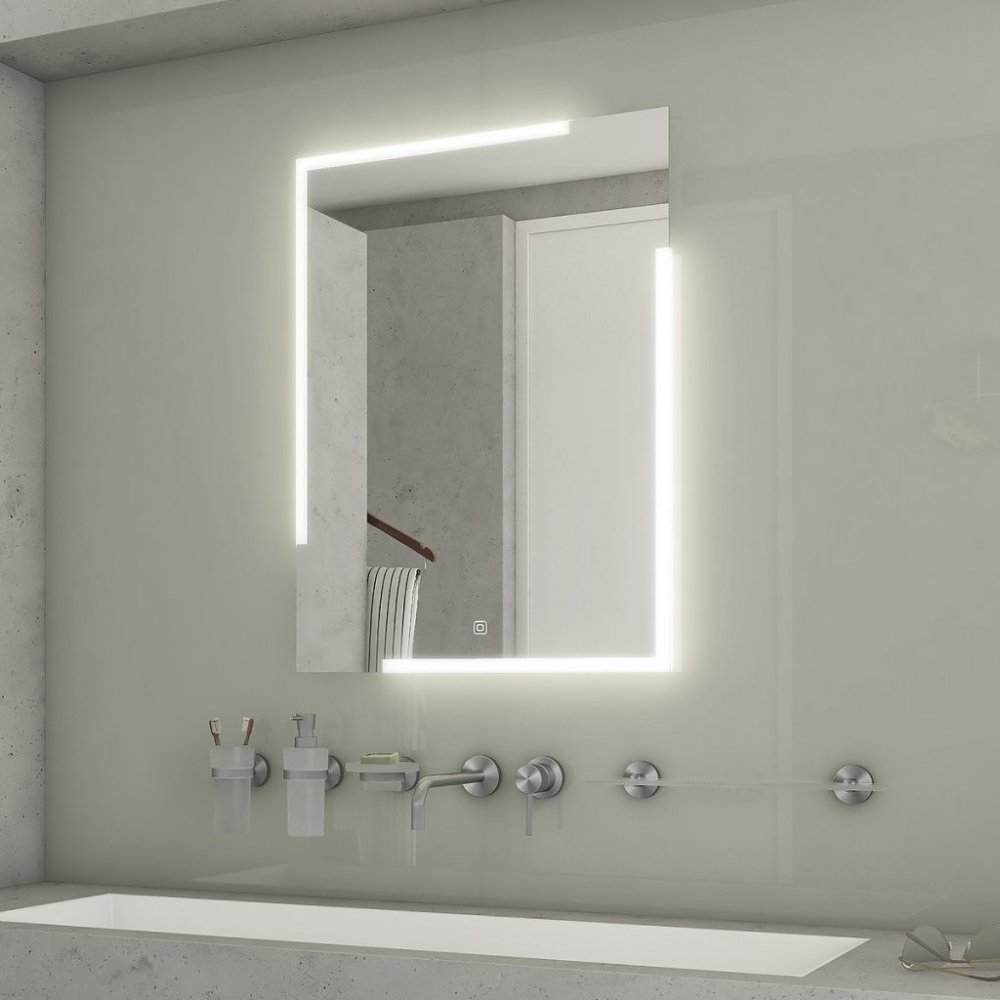 Zrcadlo do koupelny 60x80 s osvětlením v rozích, dotykový spínač je skvělým doplňkem do koupelny. Zrcadla do koupelny NIMCO vynikají kvalitním zpracováním a moderním designem. Svícení za použití akrylátového skla plexiglass. Konstrukce je z hliníkového rámu 32x19 mm, sklo zrcadla o tloušťce 5 mm. Připojení 220-240 V. Zapínání / vypínání / ovládání dotykovým senzorem s pamětí. Možnost nastavení bar...