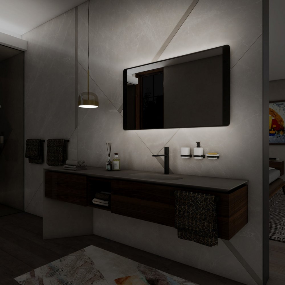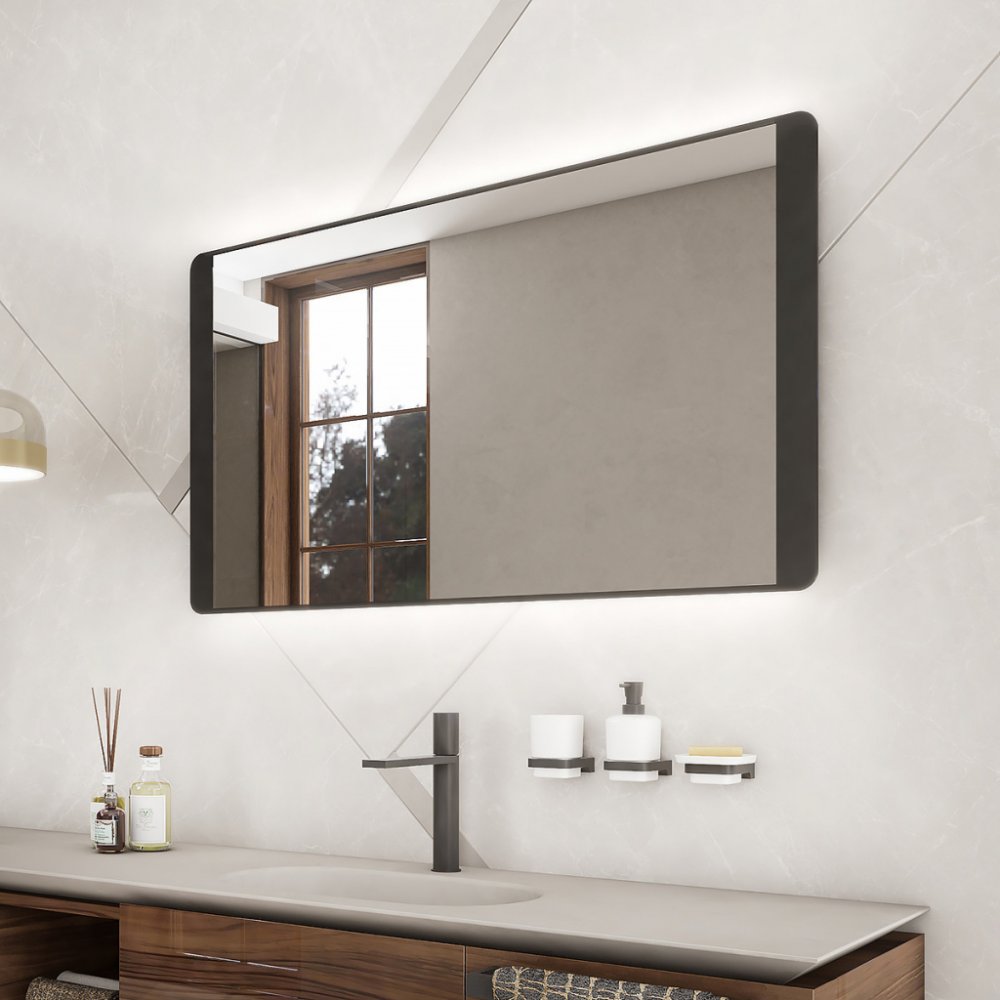 Černé zrcadlo do koupelny 80x60 s osvětlením a černým rámem je skvělým doplňkem do koupelny. Zrcadla do koupelny NIMCO vynikají kvalitním zpracováním a moderním designem. Zrcadlo o tloušťce 5 mm je zapuštěné do masivního černého matného rámu. Rám zrcadla je z hliníku. LED pásky jsou zabudované v liště z akrylového skla. Akrylové sklo lépe rozptyluje světlo a chrání Led diody před vlhkostí. Lišta j...