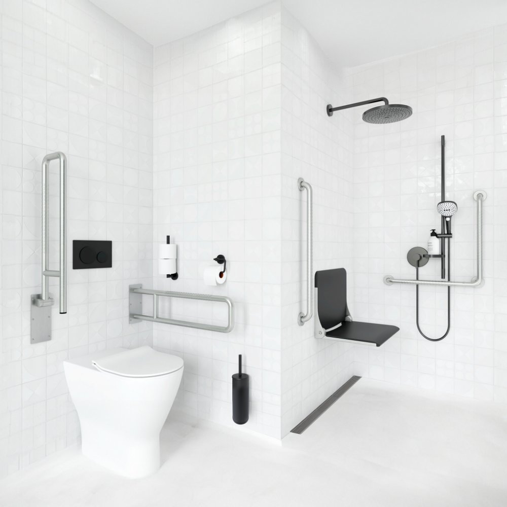 Madlo pro osoby se sníženou schopností pohybu certifikované pro bezbariérová WC a koupelny. Pomocná madla k vaně, do sprchy, či pro bezbariérová WC jsou důležitým bezpečnostním prvkem především pro seniory a osoby se sníženou pohyblivostí. Madla ulehčují vstávání z WC a snižují riziko podklouznutí v koupelně a sprše.