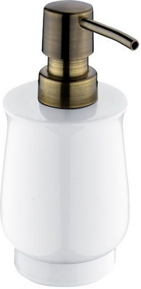 Keramický dávkovač na tekuté mýdlo. Objem 300 ml. Pumpička plast. Povrchová úprava staromosaz.