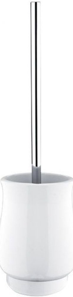 Keramický volně stojící WC kartáč. Rukojeť kartáče kovová. Povrchová úprava rukojeti chrom.