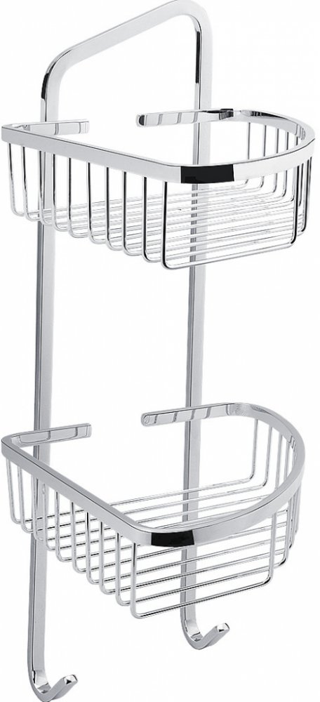 Dvoupatrová drátěná rohová polička do koupelny s háčky je skvělým doplňkem do koupelny. Opusťte konvenční tvary a vsaďte na osobitý styl! I zařízení koupelny o vás mnohé vypoví. Současné trendy se stále stáčejí k využívání chladného kovu a hran. Drátěná rohová police OPEN nabízí sladění moderních prvků i nadčasovosti. Vzdálenost mezi šrouby cca 24,50cm.
