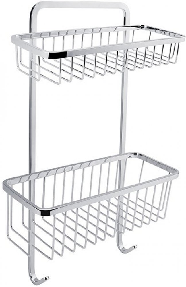 Drátěná police dvoupatrová do koupelny s háčky je skvělým doplňkem do koupelny. Opusťte konvenční tvary a vsaďte na osobitý styl! I zařízení koupelny o vás mnohé vypoví. Současné trendy se stále stáčejí k využívání chladného kovu a hran. Drátěná dvoupatrová police OPEN nabízí sladění moderních prvků i nadčasovosti. Vzdálenost mezi šrouby cca 28,50 cm.
