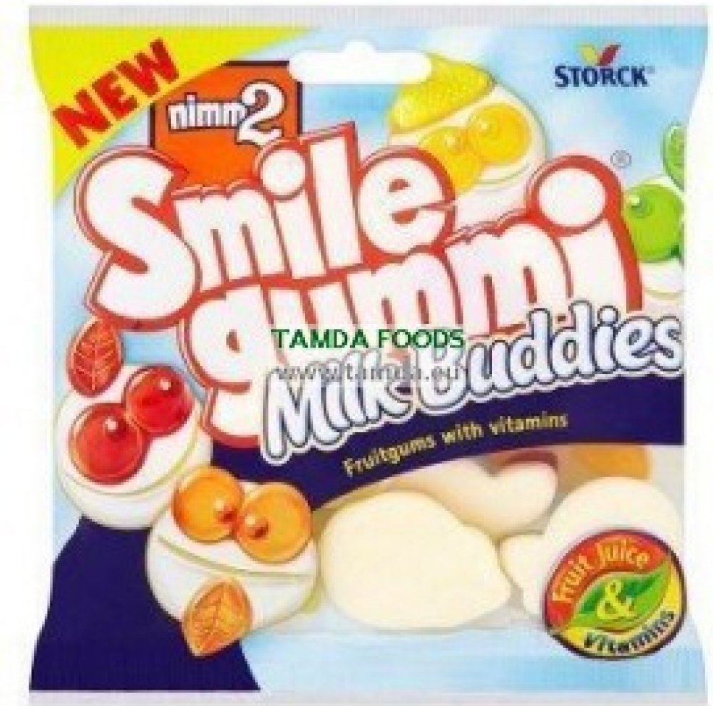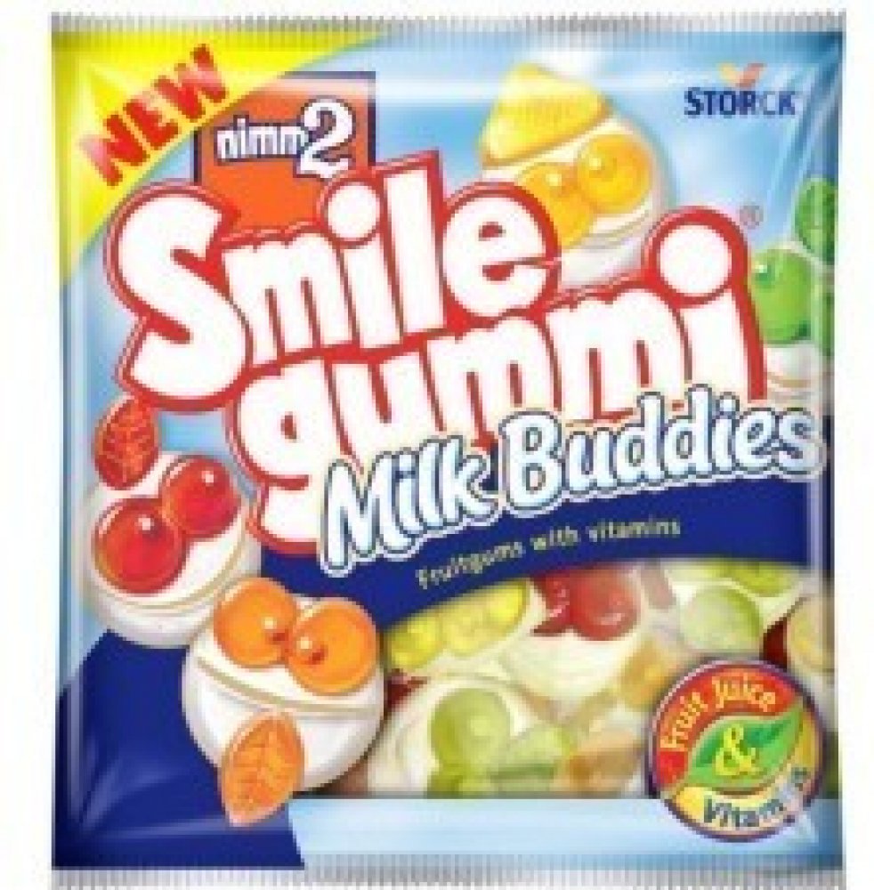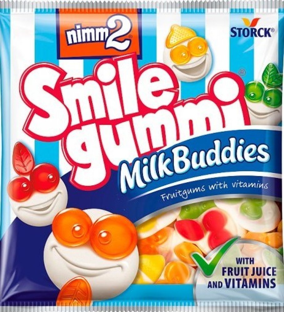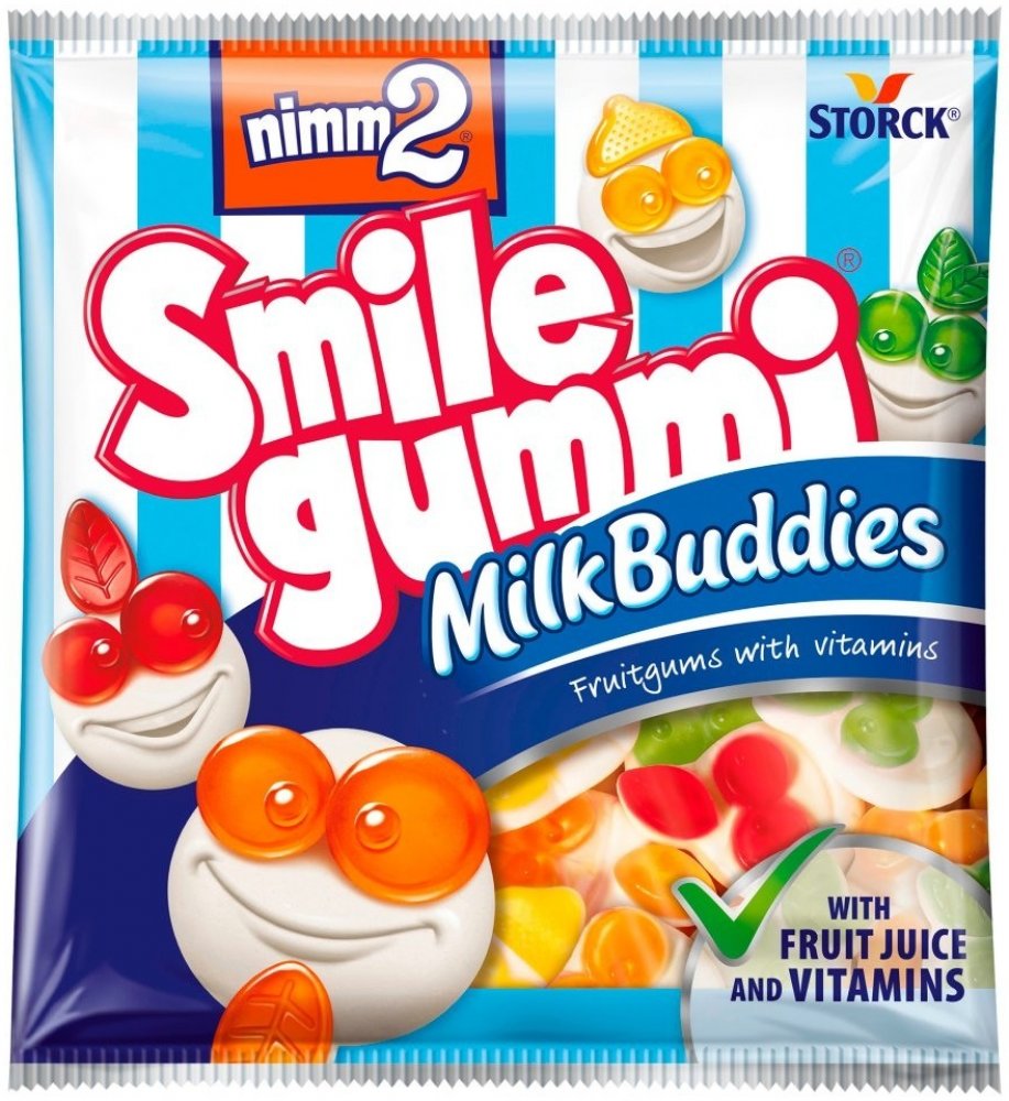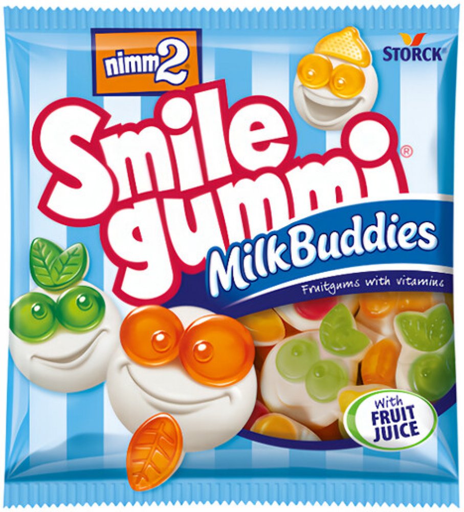 Glukózový sirup, cukr, zvlhčující látka: sorbitol; sušené odstředěné mléko (5,5%), ovocná šťáva (5%) z koncentrátu ovocné šťávy (hroznové víno, bezinky), jedlá želatina, kyseliny: kyselina c...
