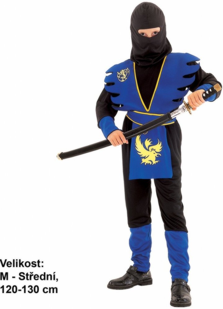 Černomodré dětské šaty s kuklou na hlavu - obleček na karneval pro všechny malé ninja bojovníky.