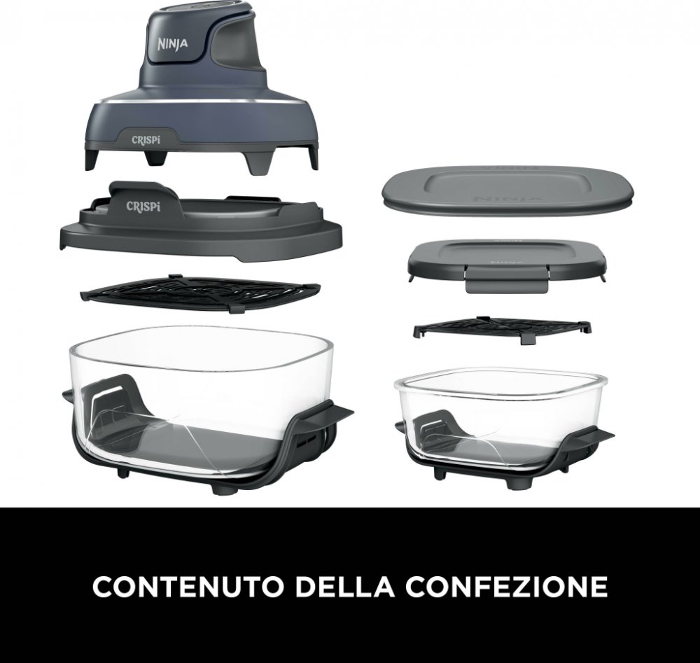 Ninja FN101EUGY Crispi 4v1 – kompaktní přenosný air fryer (horkovzdušná fritéza) s výkonným 1700W PowerPod, dvěma TempWare skleněnými nádobami 1,4/3,8 l, režimy Air Fry, Recrisp, Roast a Keep Warm. Bez PFAS, antiadhézní keramické crisper mřížky, až 75 % méně tuku, úspora energie až 50 % oproti klasické troubě, ideální pro jednotlivce, páry i malé rodiny. SEO klíčová slova: Ninja FN101EUGY, Ninja C...