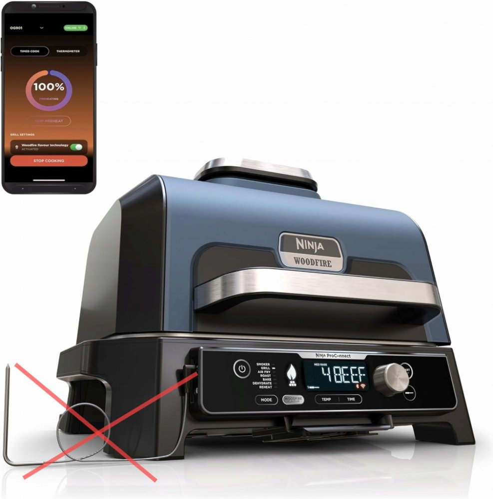 Pro Connect aplikace : Ovládání grilu a sledování průběhu pečení přímo z telefonu Velký grilovací prostor : Pojme až 10 hamburgerů, 40 hotdogů nebo 2 celá 3kg kuřata. Vestavěná teplotní sonda & 7 funkcí : BBQ Gril, BBQ Uzení, Horkovzdušné smažení, Pečení, Opékání, Sušení, Ohřívání Spaluje přírodní dřevěné pelety pro autentickou kouřovou chuť. Elektrický provoz: Ideální pro zahrady, terasy, kempy, balkóny a další místa. Odolný vůči počasí pro celoroční venkovní použití Obsah balení: 2× startovací balení Woodfire pelet, odměrka na pelety, koš na toastování, kuchařská příručka. Rozměry: výška 41 cm × šířka 57 cm × hloubka 51 cm. Hmotnost: 18 kg