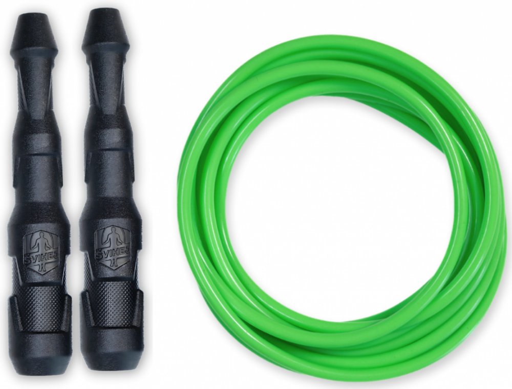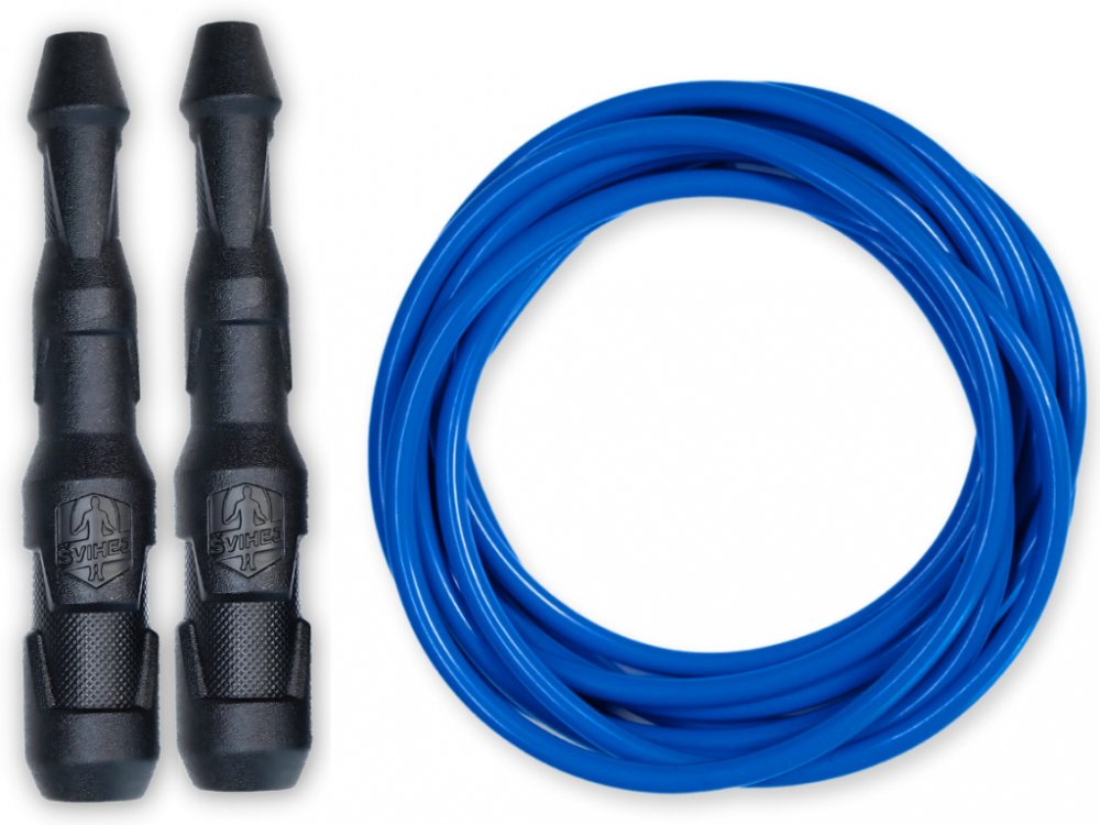 Švihadlo s PVC lankem je vhodné na intervalové tréninky, rychlejší skákání, footworky (práce nohou) a triky, kde potřebuješ vyvinout mega rychlost, takže dvojšvihy a trojšvihy. Je taky ideální na pálení kalorií a hubnutí.