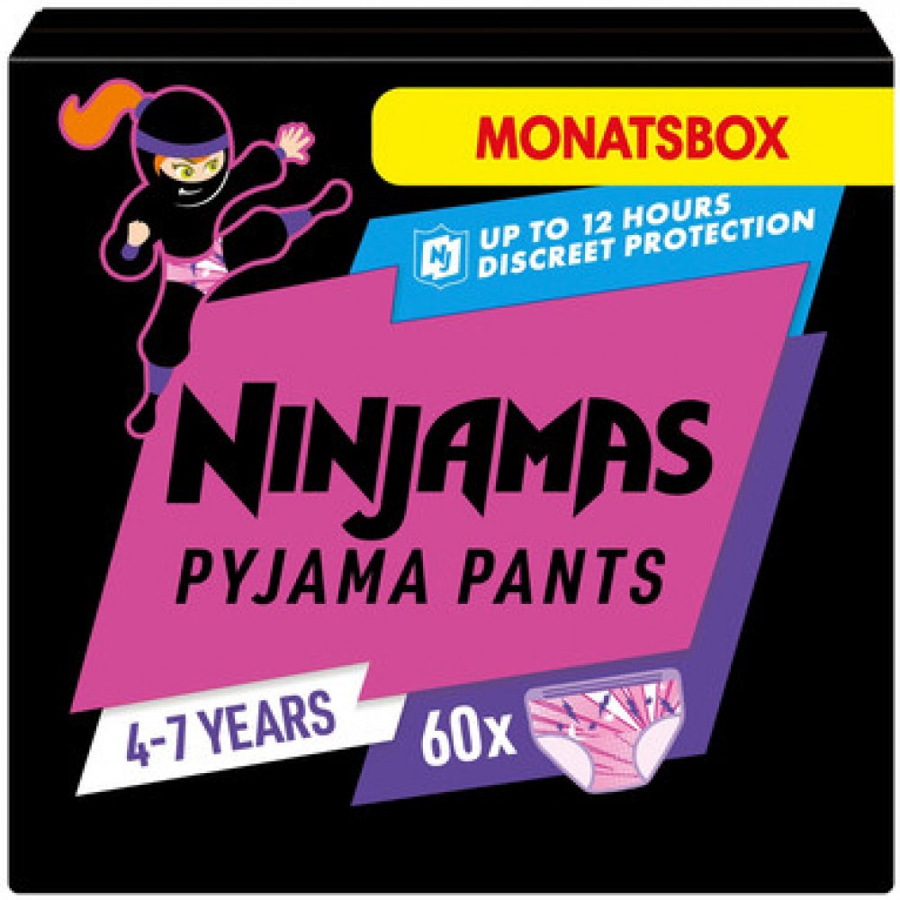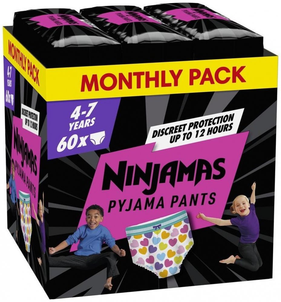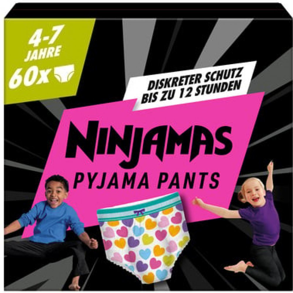 Představujeme… pyžamové kalhotky Ninjamas. Popasujte se s nočními nehodami a probouzejte se plní sebevědomí díky ochraně před přetečením během celé noci. Technologie okamžité absorpce kalhotek Ninjamas ihned absorbuje vlhkost a poskytuje tak účinnou ochranu, jakou jste ještě neviděli. Mají 360° pás FormFit , který se přizpůsobí obvodu pasu vašeho dítěte, takže sednou stejně diskrétně a pohodlně ja...