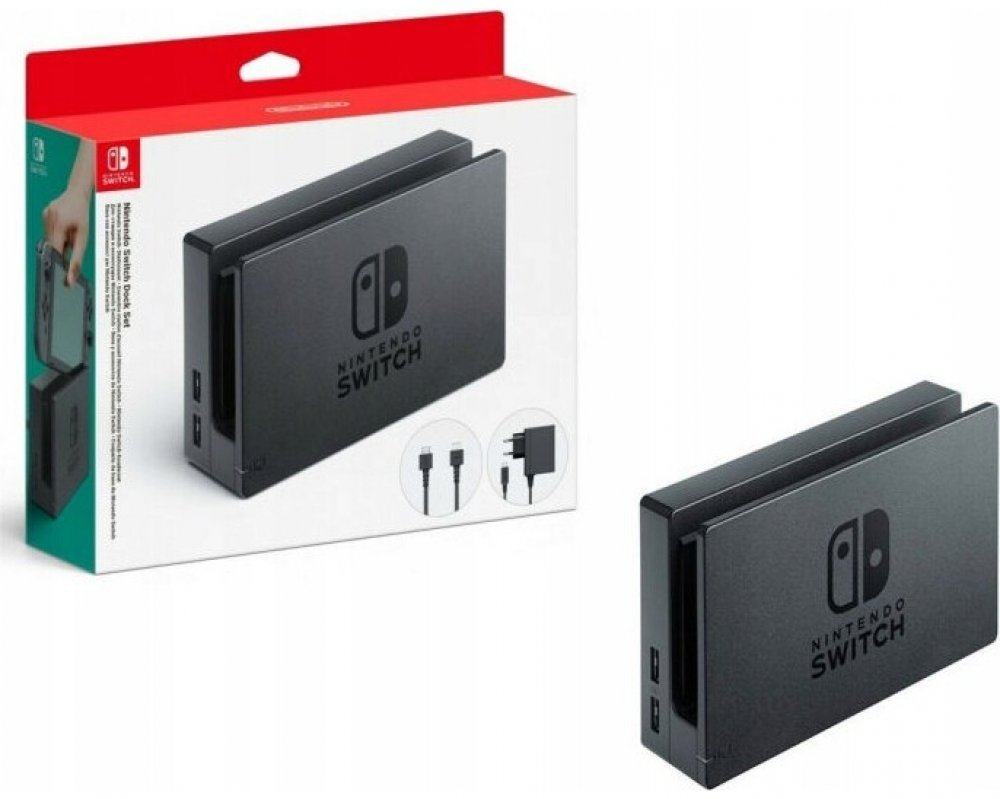 Sada dokovací stanice Nintendo Switch, která obsahuje dokovací stanici pro TV mód konzole Nintendo Switch, nabíjecí adaptér a HDMI kabel. Ideální pro hráče, kteří chtějí svou konzoli přenášet mezi více televizemi.