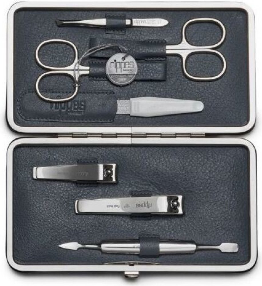 Sady na manikúru by neměly chybět v žádné domácnosti. Na cestách jsou cennými pomocníky v případě nehod, doma ideálním místem pro uložení vysoce kvalitních poniklovaných nástrojů.Série Vintage zaujme v mnoha ohledech, zvenku tmavě modrou starožitnou hovězí kůží a zevnitř kontrastním šedým a krásně měkkým semišem. Ten je zarámován do praktických a klasických rámů, které dodávají pouzdrům jejich sta...