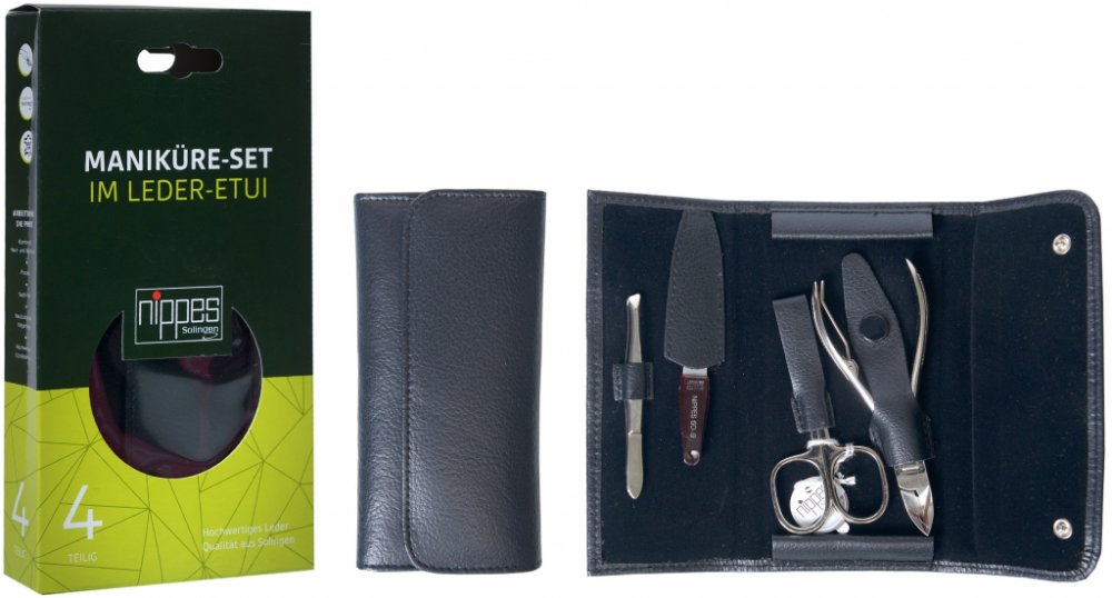 Rozšířená základní souprava pro manikúru. Všechny výrobky značky Nippes Solingen jsou nástroje ručně vyrobené z nejlepší oceli z města Solingen. Sada je balena v černém koženém pouzdru. Rozměry pouzdra 168 x 110 x 33 mm.SloženíKombinované nůžky na nehty a kůži, kleštičky na nehty, pinzeta a safírový pilník.Doplňující informaceDodavatel na trhNaturprodukt CZ spol. s r.o.Země původuNěmeckoCharakteristikaDoplňkový sortimentČárový kód4006691020040Forma1 ks