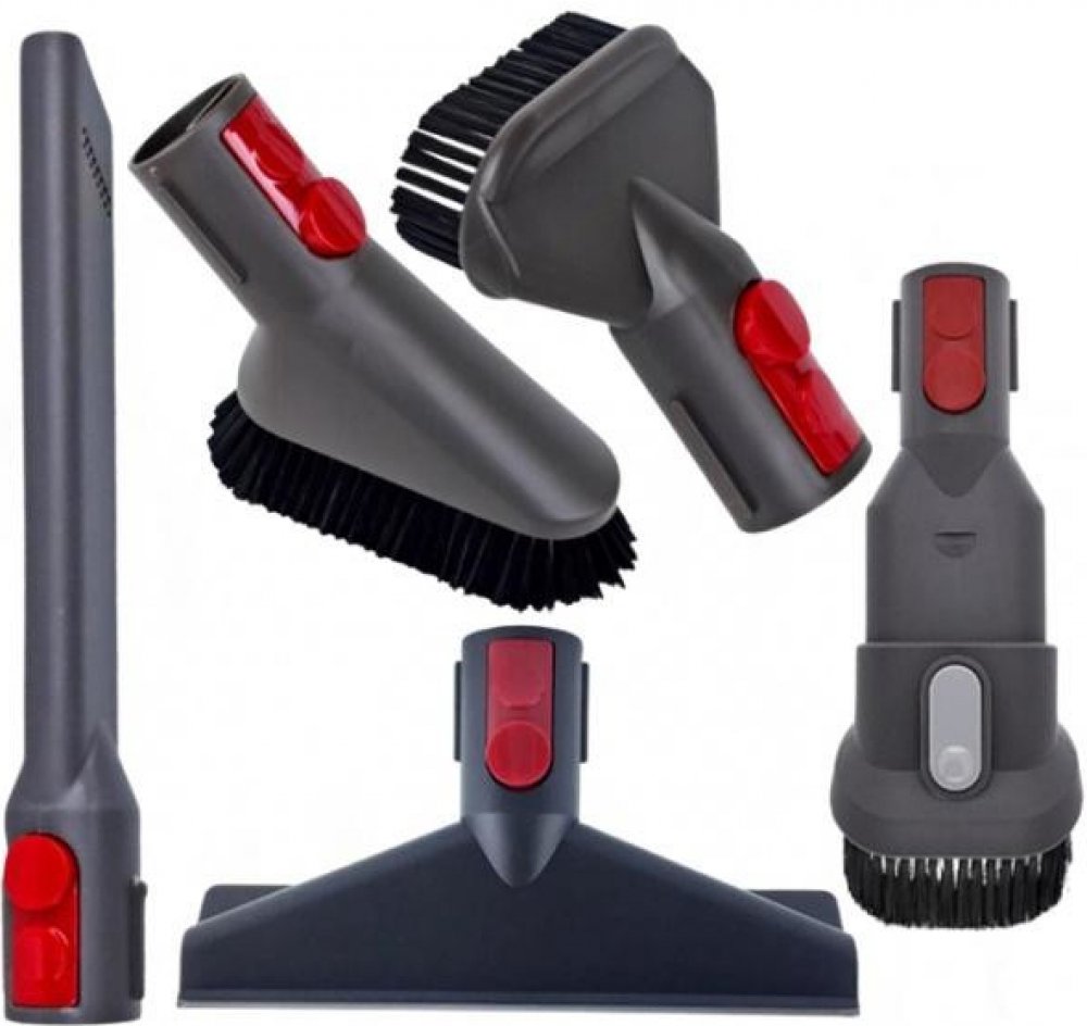 Hubice a kartáče pro vysavače Dyson Gen5detect, V15, V12, V11, V10, V8, V7 sada 5ksSada kartáčů a mini hubic je kompatibilní pro všechny modely výrobních řad Dyson Gen5detect, Dyson V15, Dyson V12, Dyson V11, Dyson V10, Dyson V8, Dyson V7 a obsahuje: jemný oválný kartáč na choulostivé povrchy, kartáček s tvrdými štětinami na odolné nečistoty, úzkou spárovou dlouhou hubici, multifunkční hubici 2v1 - štěrbinový kartáč, a hubici na čalounění. S jemným oválným kartáčem šetrně vyčistíte nábytek i další předměty, kartáč s tvrdými štětinami pomůže odstranit i ulpělé skvrny, štěrbinová kartáčová hubice je skvělý nástroj nejen na knihovny, konzole nebo poličky, úzká 24,5 cm dlouhá štěrbinová hubice dosáhne i do koutů a hůře dostupných míst, matracovou hubicí odstraníte rychle nečistoty z textilních povrchů a čalouněného nábytku.sada hubic a kartáčů pro vysavač Dyson Gen5detect, Dyson V15, Dyson V12, Dyson V11, Dyson V10, Dyson V8, Dyson V71x jemný oválný kartáč - pro šetrné čistění nábytku a dalších předmětů, choulostivých na poškrábání, stejně tak textilních povrchů. Rozměry kartáče: 15,4x10,9 x5,5 cm1x kartáč s tvrdými štětinami - tento kartáč je určen pro důkladné čistění čalounění a polstrovaného nábytku v domácnosti i autosedače. Přilnulé nečistoty lze lépe odstranit díky odolným štětinám. Rozměry kartáče 11,6 x 8,4x 3,9 cm.1x kartáčová a štěrbinová hubice 2v1 - Hubici lze využít buď jako prachový kartáč, nebo po vysunutí úzkého štěrbinového nástavce stiskněte tlačítko na její vrchní straně - lze použít jako štěrbinovou hubici. Rozměry: délka 15,3 cm, vysunutá 17,5 cm.1x matracová hubice na textilní povrchy se zabudovaným zvedačem nití k odstranění vlasů, zvířecích chlupů a vláken. Rozměry hubice: 19x11x3,9 cm1x štěrbinová hubice - vhodná k vysávání úzkých míst a šikmých povrchů. Délka úzké hubice 24,7 cmnáhradní výroba Sada hubic pro vysavače Dyson je vhodná pro modelové řady: DYSON Gen5detect AbsoluteDYSON Gen5detect Absolute OutsizeDYSON SV10 V8DYSON SV11 V7DYSON SV12 V10DYSON SV14 V11DYSON SV15 V11DYSON SV17 V11DYSON SV18 V12DYSON SV20 V12DYSON SV22 V15DYSON SV23 Gen5detect AbsoluteDYSON SV26 V12DYSON SV30 V12DYSON SV46 V12s Detect Slim SubmarineDYSON V10 Serie - všechny modely.DYSON V11 Serie - všechny modelyDYSON V12 Serie - všechny modelyDYSON V15 Serie - všechny modelyDYSON V15s Detect SubmarineDYSON V7 Serie - všechny modelyDYSON V8 Serie - všechny modely
