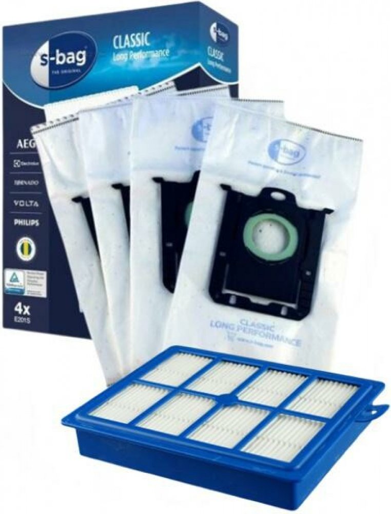Sáčky Electrolux S-Bag ® Classic Long Performance E201 4ks pro vysavače ELECTROLUX - SRK1S značení kompatibilní ELECTROLUX + HEPA filtrSada originálních sáčků s náhradním omývatelným HEPA filtrem je kompatibilní se značením HEPA filtru Electrolux EFH12, EFH12W, EFH13W, AEG AFS1W, Philips FC8031, FC8038 a značením sáčků s-bag Electrolux E200, E200B, E200M, E201B, E201M, E201S, E202, E203, E203S, E2...