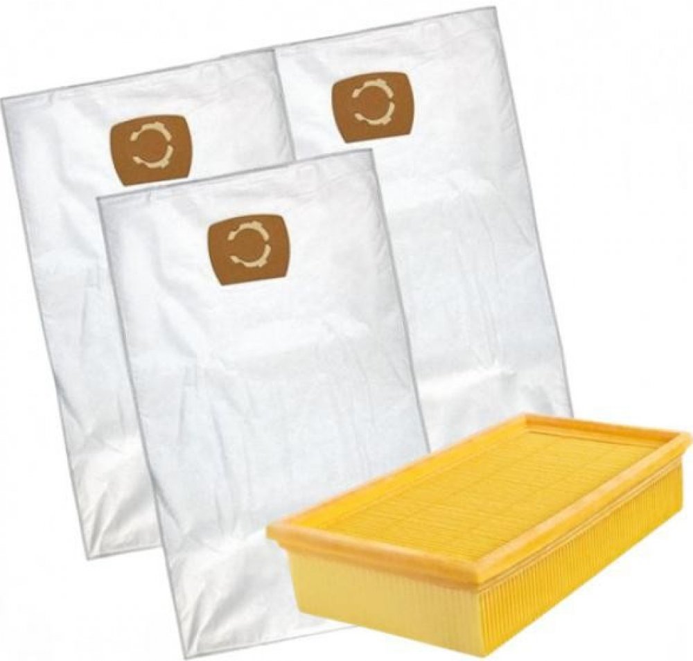 Filtr pro Kärcher 6.904-367, NT 30/1, NT 35/1, Bosch GAS 35, Hilti VC 40 a sáčky 35L, sada 1+3ksSada sáčků a filtru je určena pro vysavače Bosch GAS 35 L/m/AFC, Bosch GAS 35, Dewalt, Fein Dustex 35, Flex S36, VC 35, Hilti VC 40, Kärcher NT 30/1, Kärcher NT 35/1, Kärcher NT 40/1, NT 45/1, NT 55/1, Kärcher NT 561, Kärcher NT 611, Storch, Würth a dalších vysavačů a obsahuje 5 textilních univerzálních...