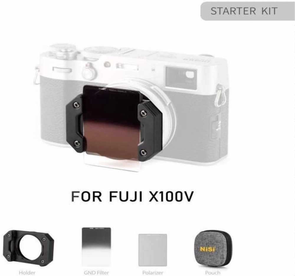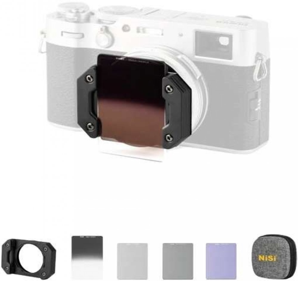 Sada filtrů pro fotoaparáty Fujifilm série X100 včetně příslušenství k jejich upevnění.