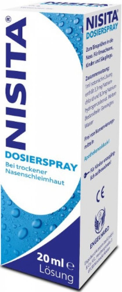 Nisita nosní sprej se používá při příznacích rýmy a alergie. Pomáhá uvolňovat ucpaný nos, čistí nosní sliznici a poradí si i se strupy a zaschlým hlenem. Obsažené soli v přípravku mají hydrofilní účinek, díky kterému je nosní dutina zvlhčena. Přípravek účinně zabraňuje vzniku alergické rýmy a pomáhá odplavit alergeny.
