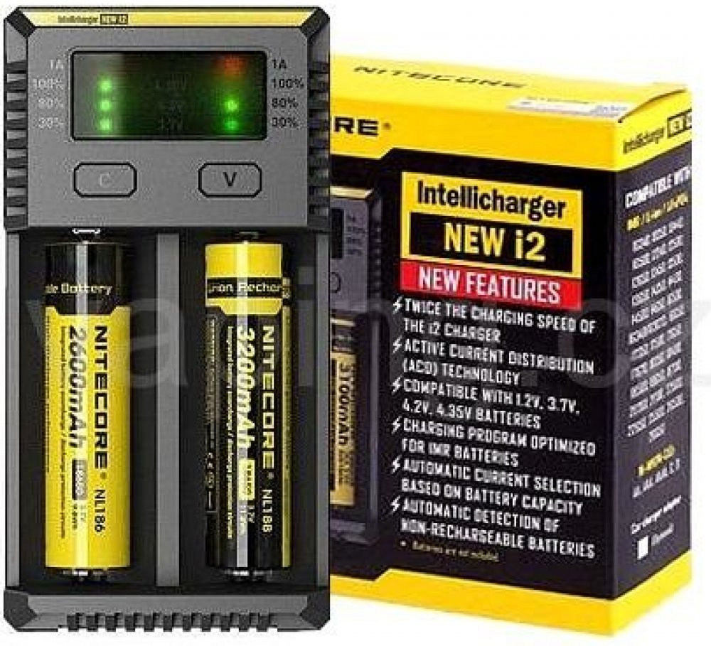 Nitecore i2 NEW je univerzální inteligentní nabíječka, kompatibilní téměř se všemi válcovými dobíjecími bateriemi. Nabíječka automaticky detekuje Li-ion, Ni-MH a Ni-Cd baterie. V nabíječce lze nabíjet akumulátory IMR a LiFePO4. Inteligentní nabíječ, vždy vybere optimální režim nabíjení (CC, CV a dV / dt) pro danou baterii a každý mikroprocesorem řízený nabíjecí slot pak monitoruje a nabíjí baterii samostatně. Nabíječka nabízí dva nabíjecí proudy - 500mA a 1000mA, velikost proudu je volena automaticky podle velikosti akumulátoru. Pokud nabíjíte v obou nabíjecích slotech současně, bude každý akumulátor nabíjen proudem 500mA. Jakmile je jeden z akumulátorů plně nabitý bude veškerý nabíjecí proud 1000mA proudit pouze do jednoho nabíjecího slotu a tím urychlí nabití akumulátoru. Nabíječka má barevný indikátor zobrazující stav nabíjení. Inteligentní automatika po úplném nabití, nabíjení ukončí. Nitecore i2 NEW je plně automatická inteligentní nabíječka.