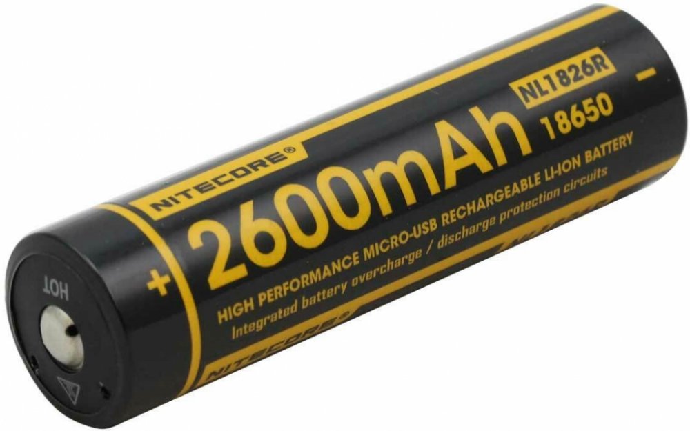 Nabíjecí USB baterie Nitecore NL1826R s integrovaným nabíjecím portem micro-USB s kapacitou 2600 mAh. Baterie má zabudovaný indikátor napájení, který se aktivuje během nabíjení. Během nabíjení svítí červená kontrolka a po úplném nabití baterie svítí zeleně. Micro-USB port se nachází z boku z boku, při plusovém pólu, akumulátor nabíjí dostatečně rychle díky nabíjecímu proudu 800 mAh. Akumulátor lze nabíjet i ve standardní nabíječce Li-ion 18650 3,6V. - typ baterie: 18650 - napětí: 3,6 V - nabíjecí kabel USB: 5 V - nabíjecí proud USB: max 800 mAh - kapacita: 2600 mAh - životnost 500 cyklů nabíjení - ochrana proti úplnému vybití, přebití, zkratu - rozměry (délka x průměr) 69,8 x 18,8 mm - hmotnost 47,3 g