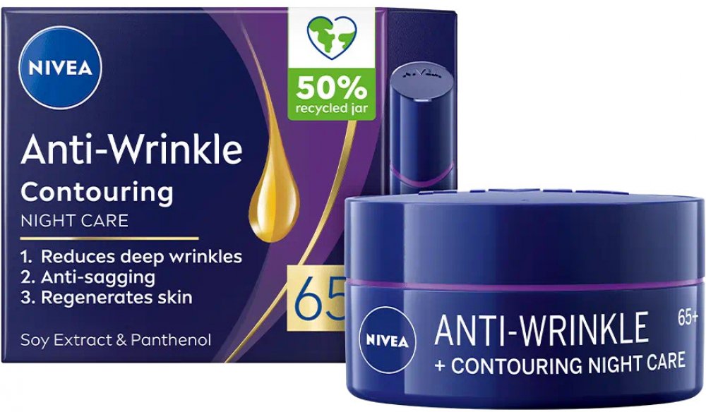 Nivea noční krém pro zlepšení kontur 65+, 50 ml kombinuje důmyslnou texturu s potřebami zralé pleti. Je navržen tak, aby v nočních hodinách poskytl intenzivní hydrataci a přirozenou podporu konturám obličeje. Produkt přináší praktické výhody pro ženy, které chtějí jednoduchou a účinnou večerní péči zaměřenou na pevnost a sjednocení pleti.