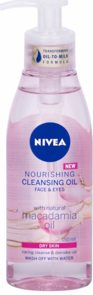 Čisticí olej **Nivea Nourishing Cleansing Oil** je určený pro odlíčení a **čištění suché pleti**, neboť obsahuje **makadamiový olej**, který suchou pokožku hydratuje a vyživuje.