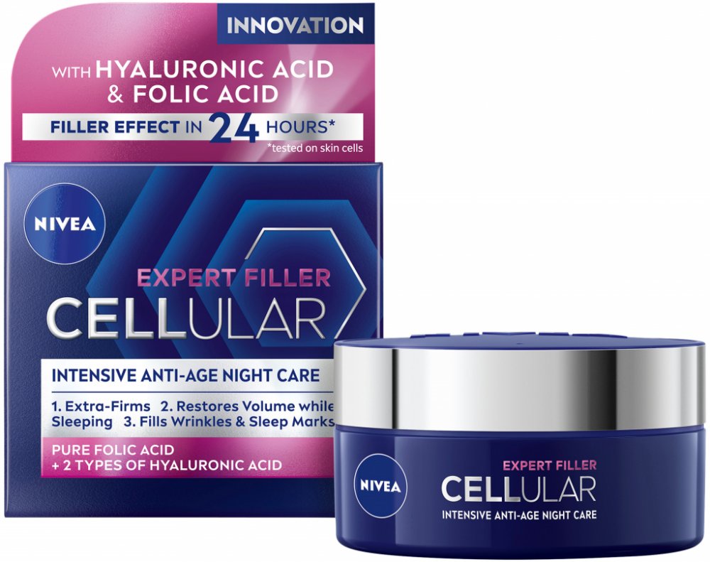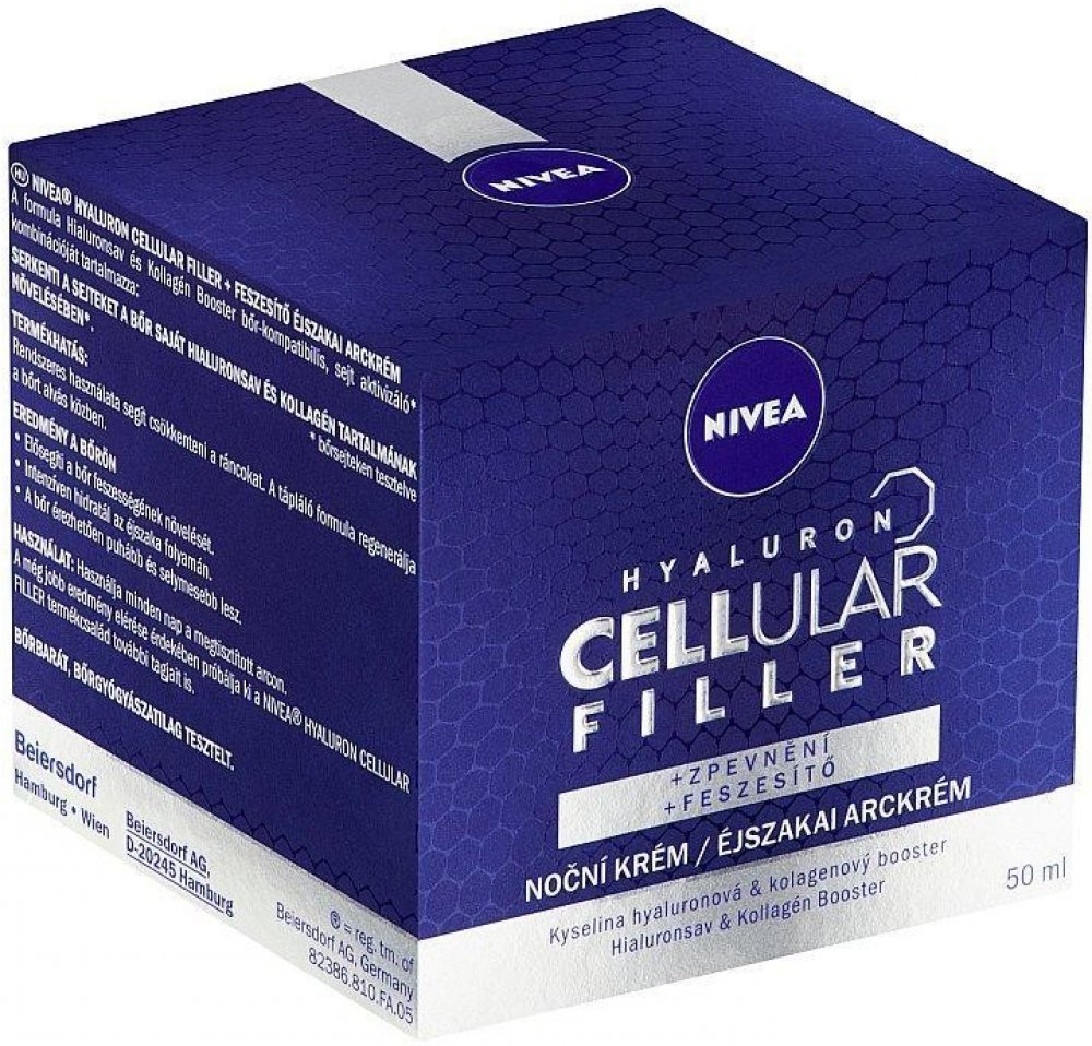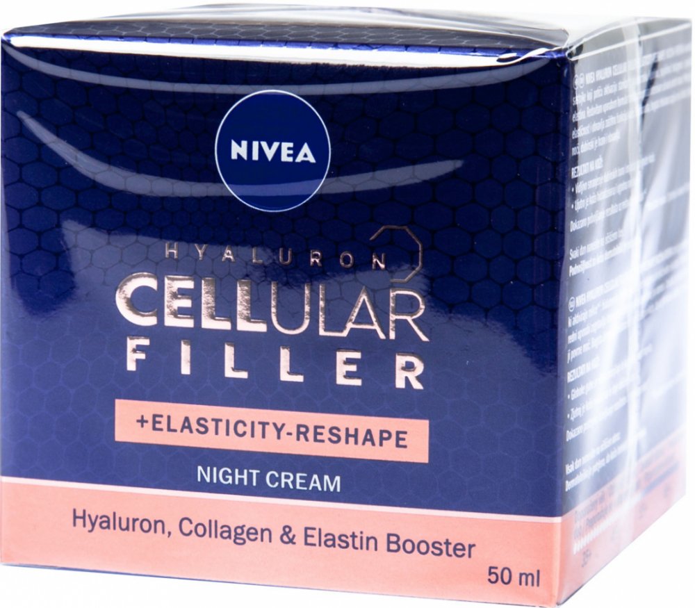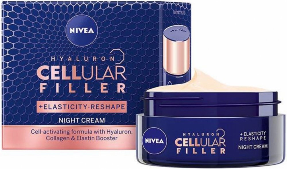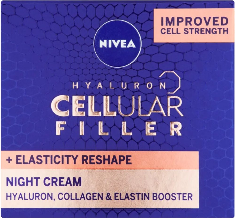 Remodelační noční krém Hyaluron Cellular Filler kombinuje účinné látky, které aktivují pleťové buňky, aby dokázaly produkovat svoji vlastní kyselinu hyaluronovou, kolagen a elastin. Při pravidelném používání intenzivně bojuje proti vráskám. Zlepšuje pružnost a obnovuje sílu pleti. Bohaté složení se vstřebává do pleti během noci a poskytuje jí hloubkovou výživu a regeneraci.
