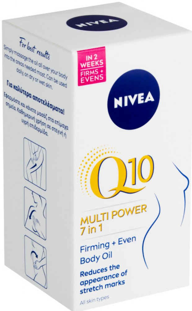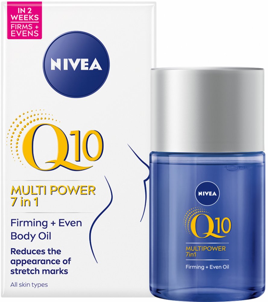 Zpevněte svou pokožku díky koenzymu Q10 a užijte si léto v plavkách. Vyzkoušejte: NIVEA Zpevňující tělový olej Q10 MULTI POWER 7 v 1.